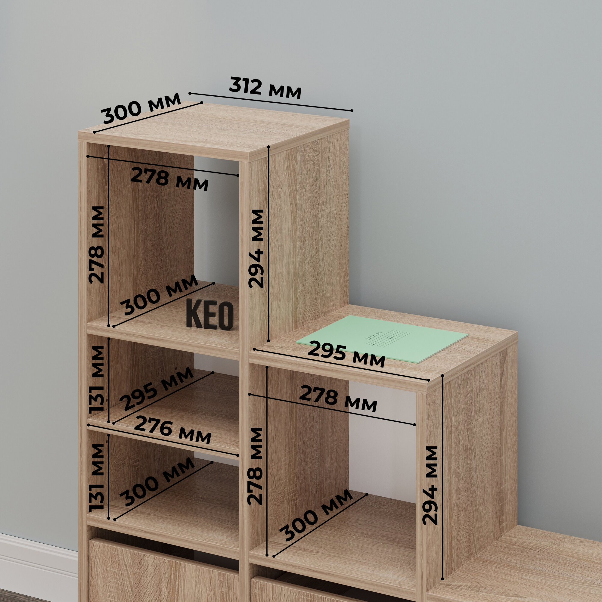 Стеллаж напольный Кео СТЖ-300 белый и сонома с дверцами для книг в гостиную детскую ванную комнату 1024х293х700 мм 5 702 ₽
