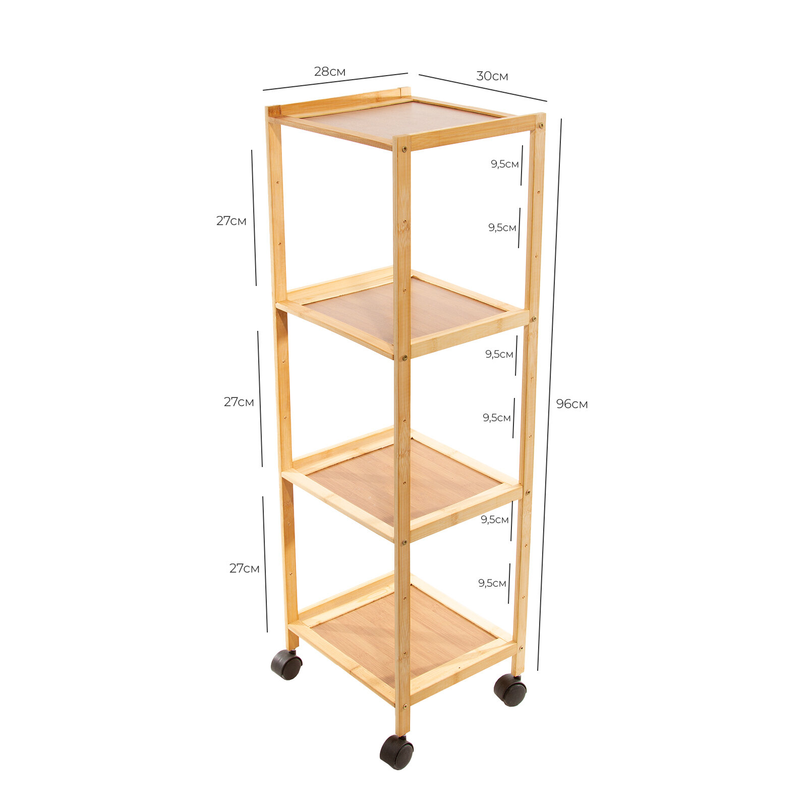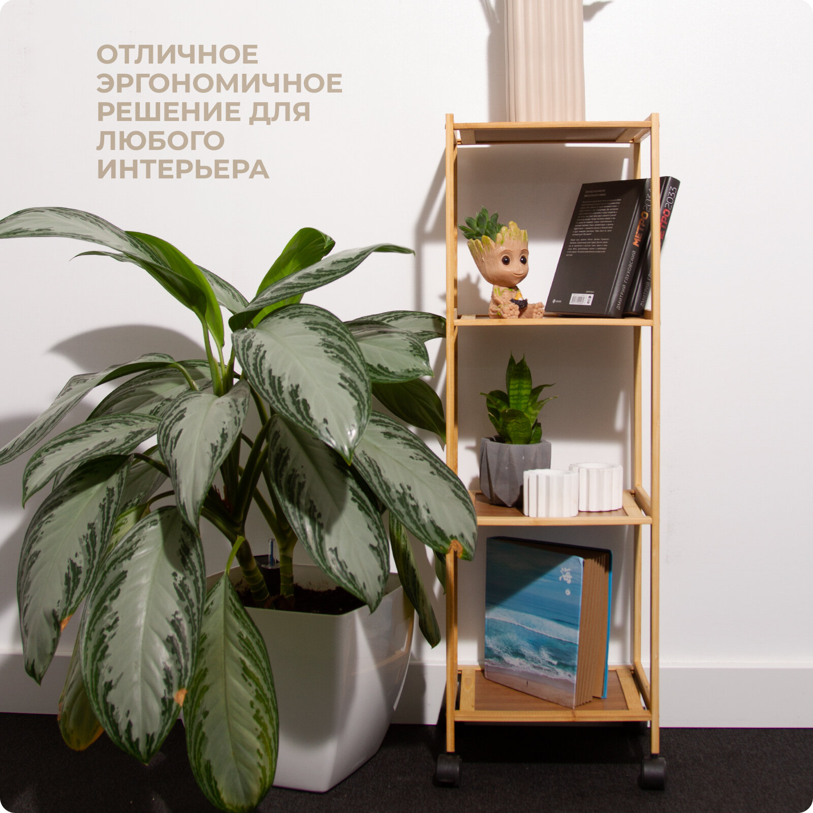 Этажерка на колесиках 4 полки, 96х28х30 см Hans&Helma бамбуковый деревянный стеллаж для ванной, обуви, кухни информация: