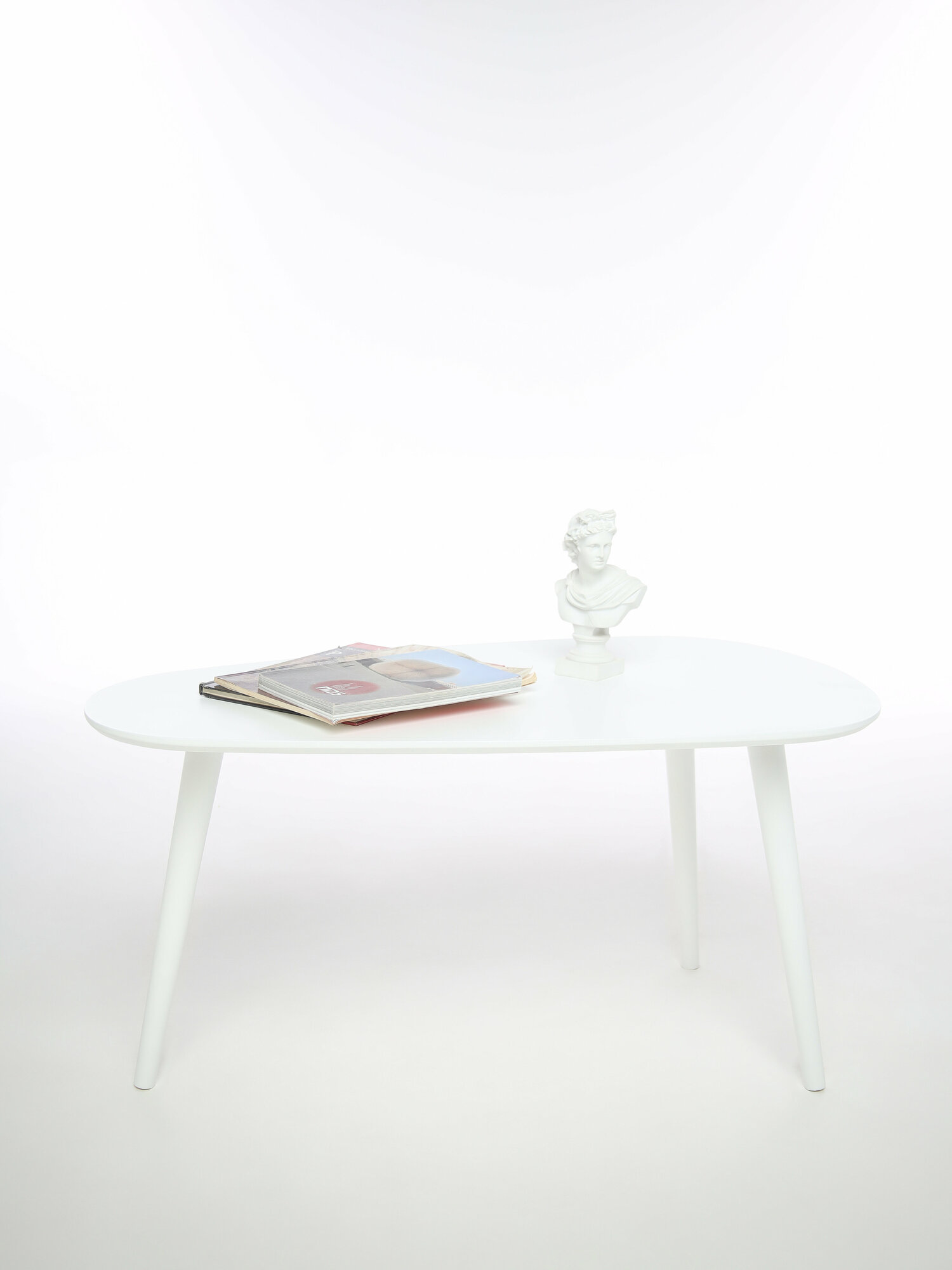 Журнальный столик "Нико" 90х50х45 см, массив дерева, МДФ, белый, 3 ножки, подпятники 4 600 ₽
