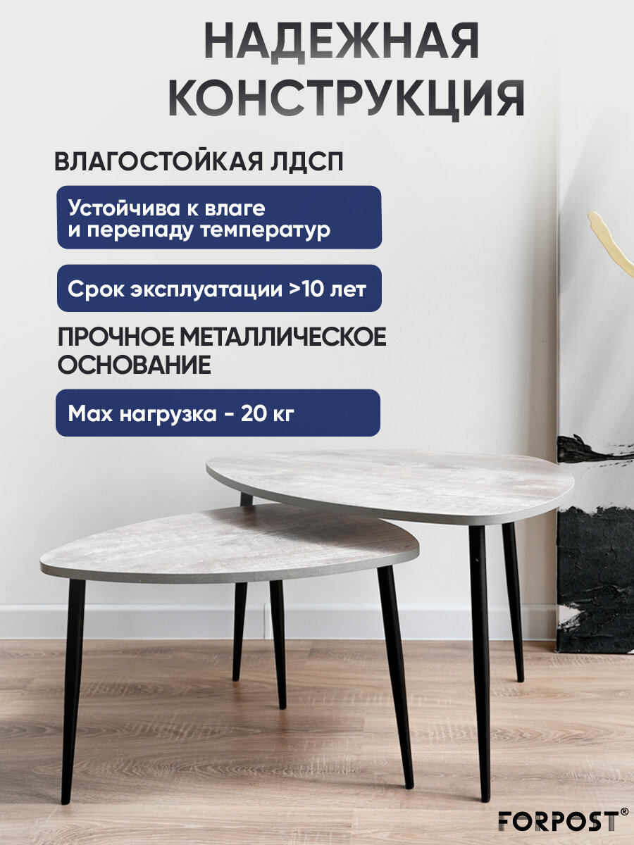 Журнальный столик Саванна, 2 штуки, бетон темный информация: