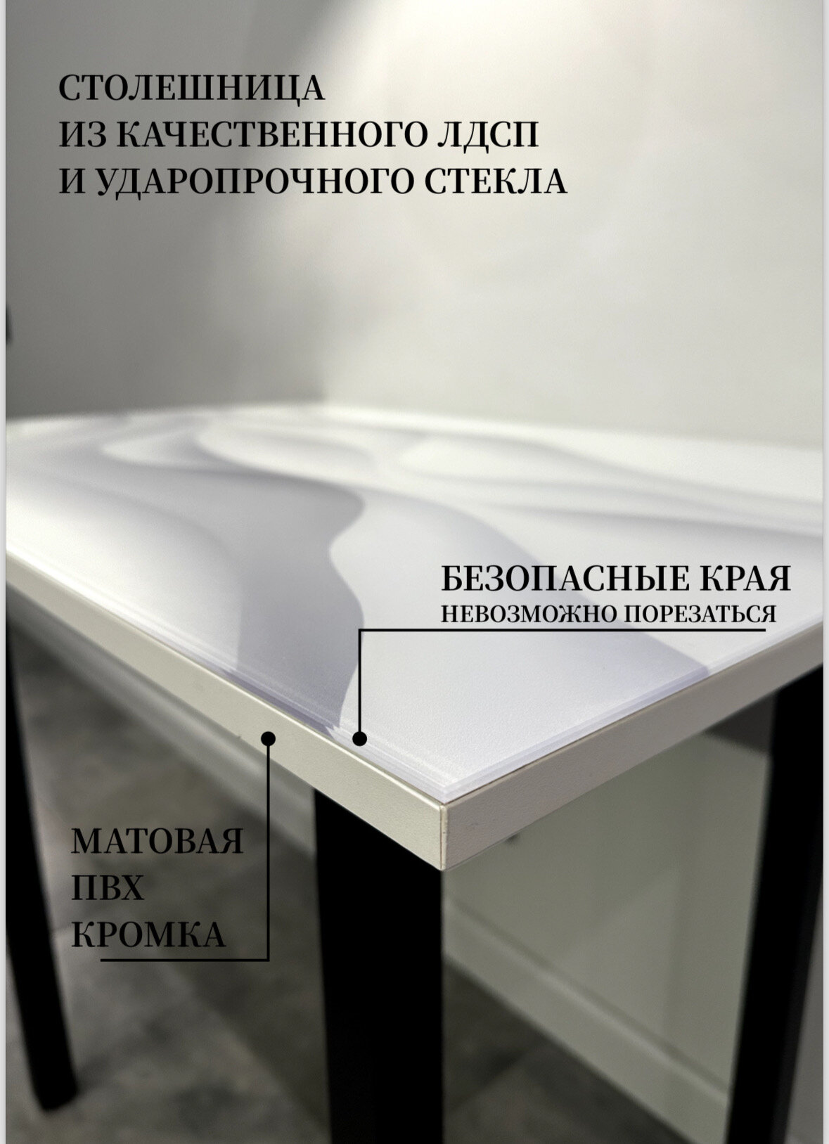 Стол кухонный обеденный, VoDi, стол обеденный Волна, стеклянная столешница, 90х60 см информация: