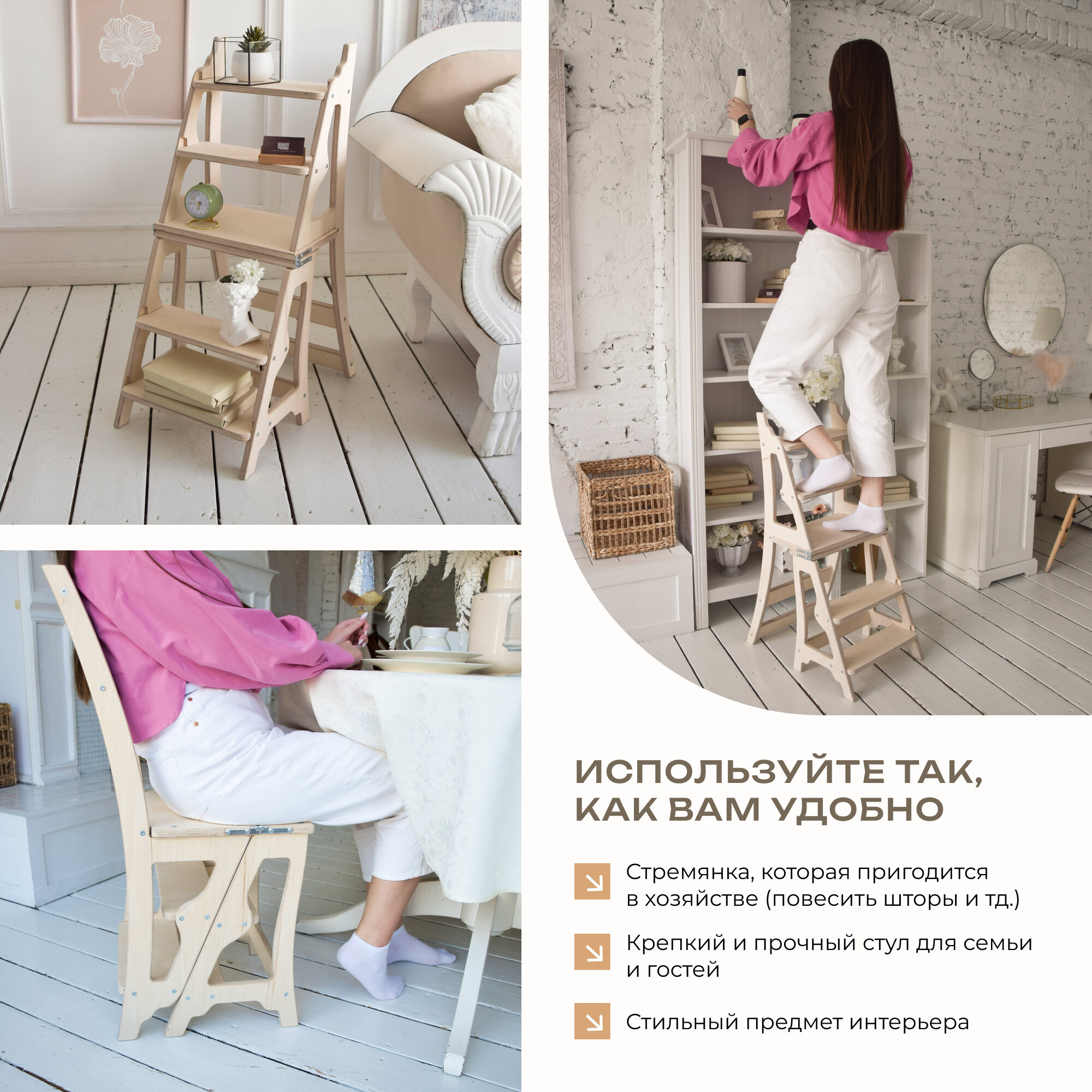 Отзывы на Стул-стремянка лестница, складной деревянный стул, натуральный без шлифовки
