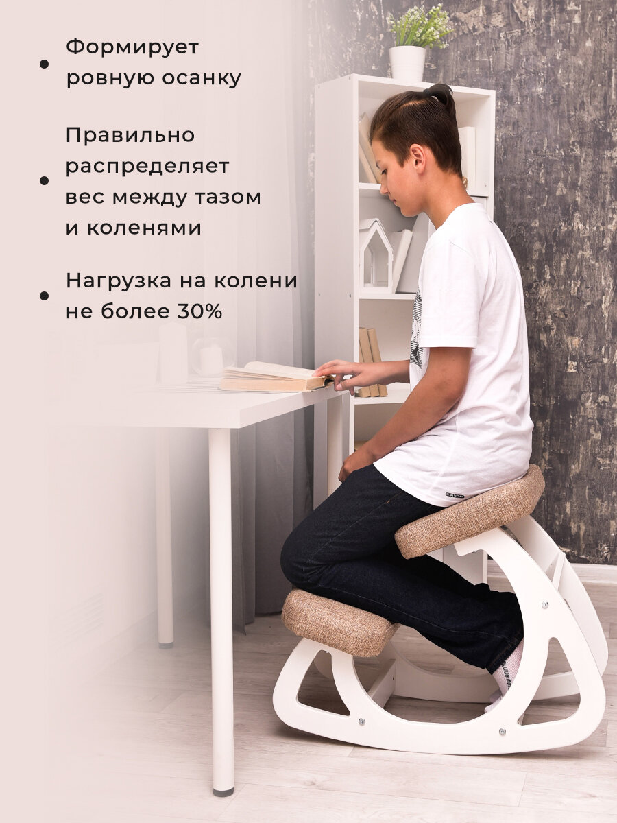 Коленный стул, ортопедический стул, стул для школьника, стул компьютерный, детский стул, балансирующий ортопедический коленный стул JetMama, ровная осанка для детей и взрослых, для роста 130-170 см, бежевый 6 100 ₽