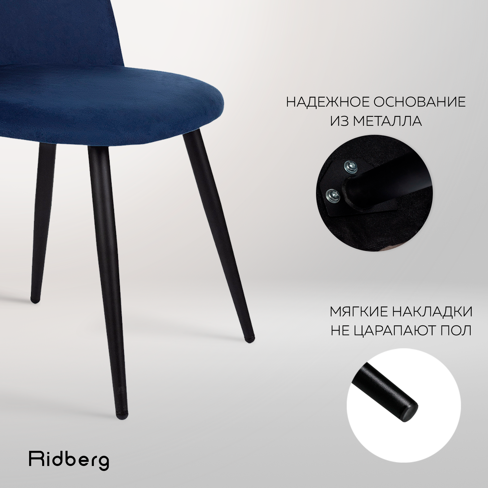 Стул для кухни Ridberg лори велюр, синий, 1 шт, столовой, гостиной, офисный, кухонный, со спинкой, на ножках, мягкий 7 690 ₽
