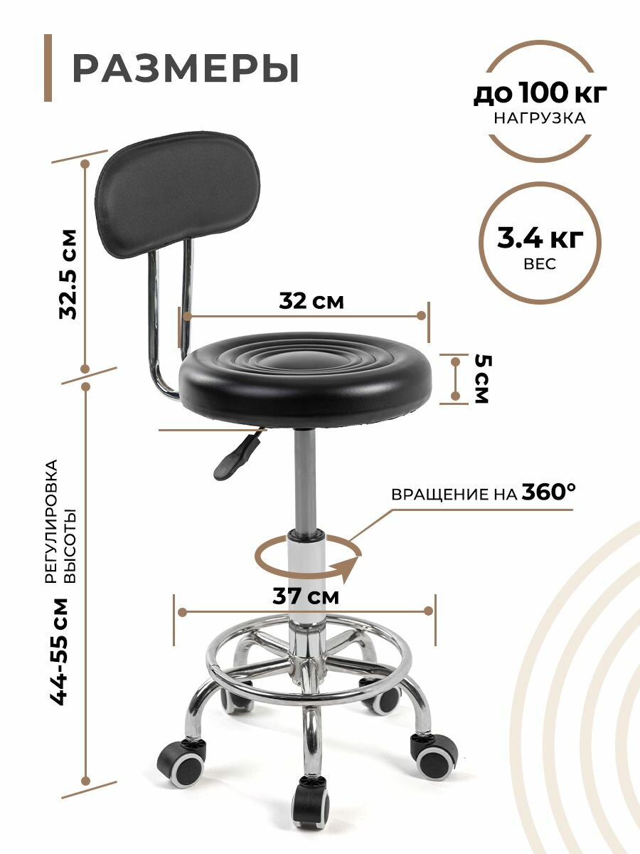 Стул мастера GL-BR-003 мягкий, на колесиках, с высокой спинкой, цвет черный информация: