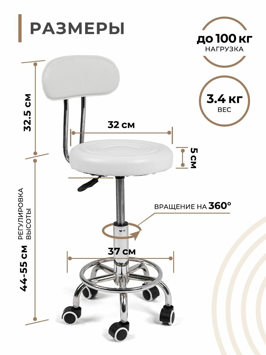 Стул мастера GL-BR-003 мягкий, на колесиках, с высокой спинкой, цвет белый информация: