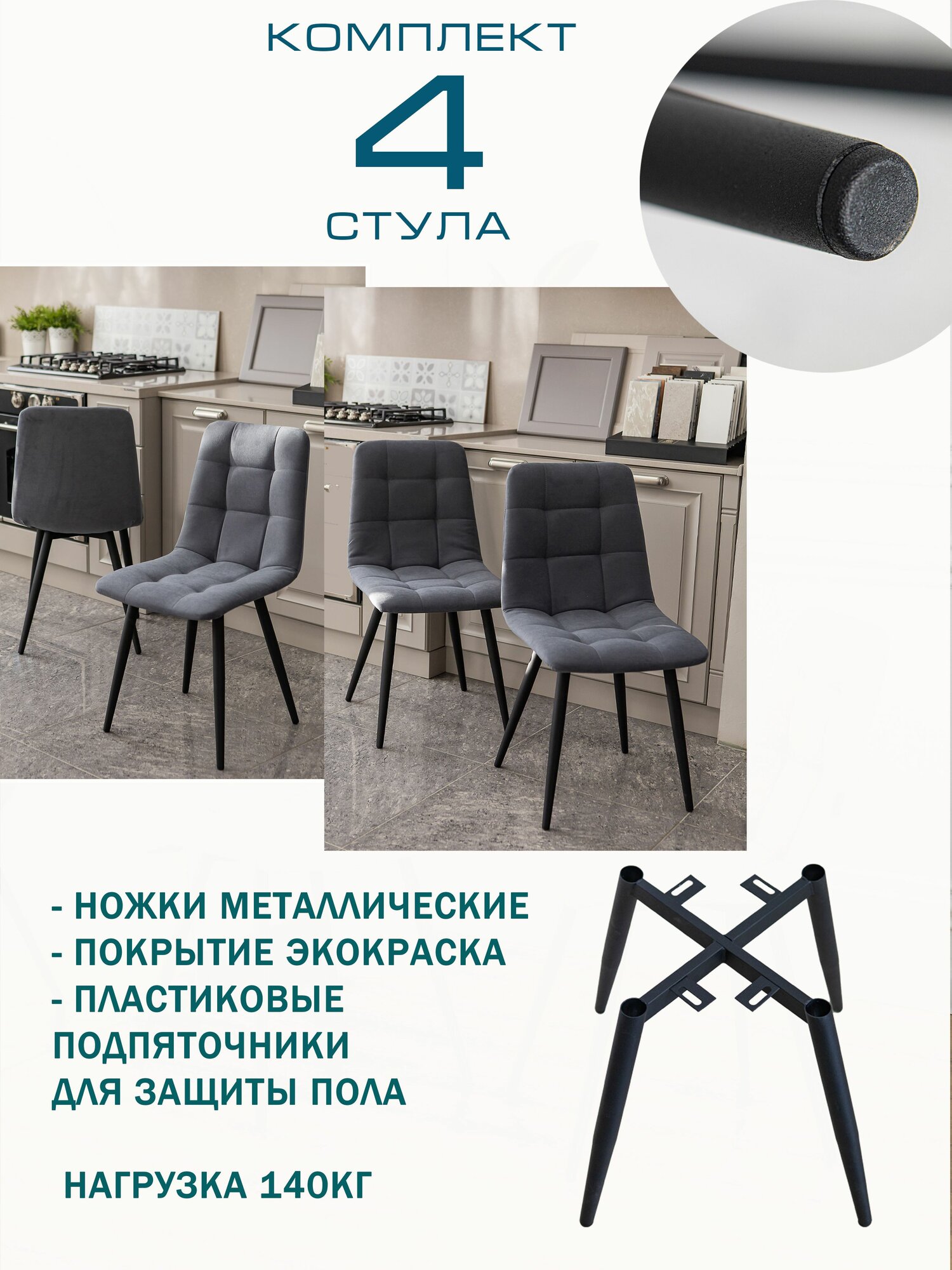 Тедди Стул на кухню мягкий из велюра/ Стул мягкий, темно-серый цвет с черными ножками /комплект стульев 4 шт информация: