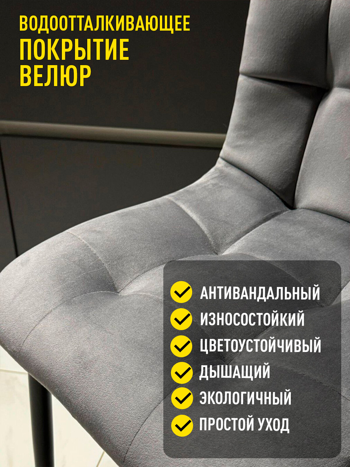 Отзывы на Стул кухонный Фред серый с черными ножками, мягкий со спинкой 4 шт
