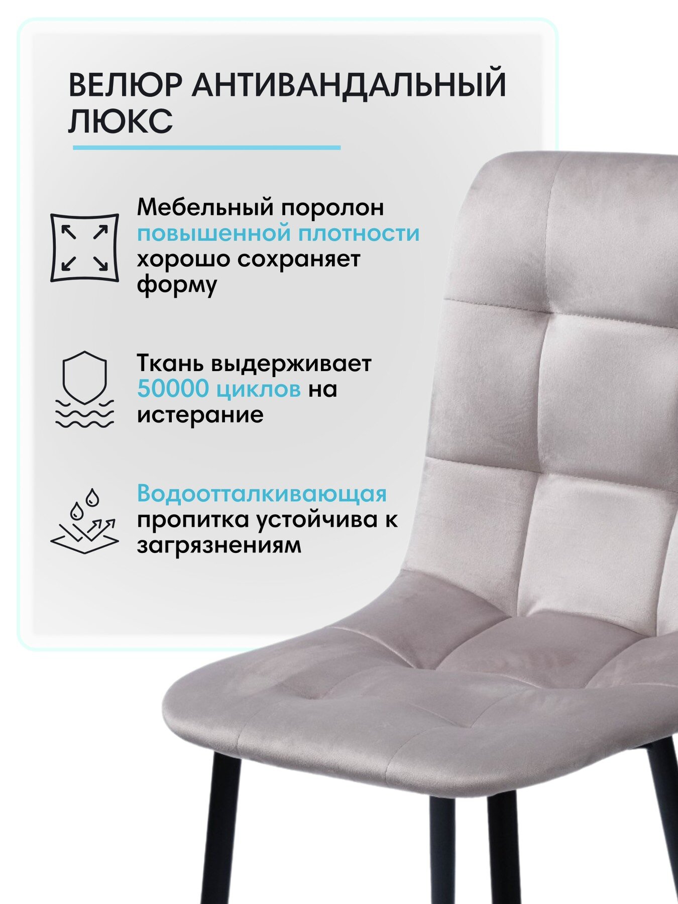 10 цен на Стул кухонный Фред светло-серый с черными ножками, мягкий со спинкой 4 шт