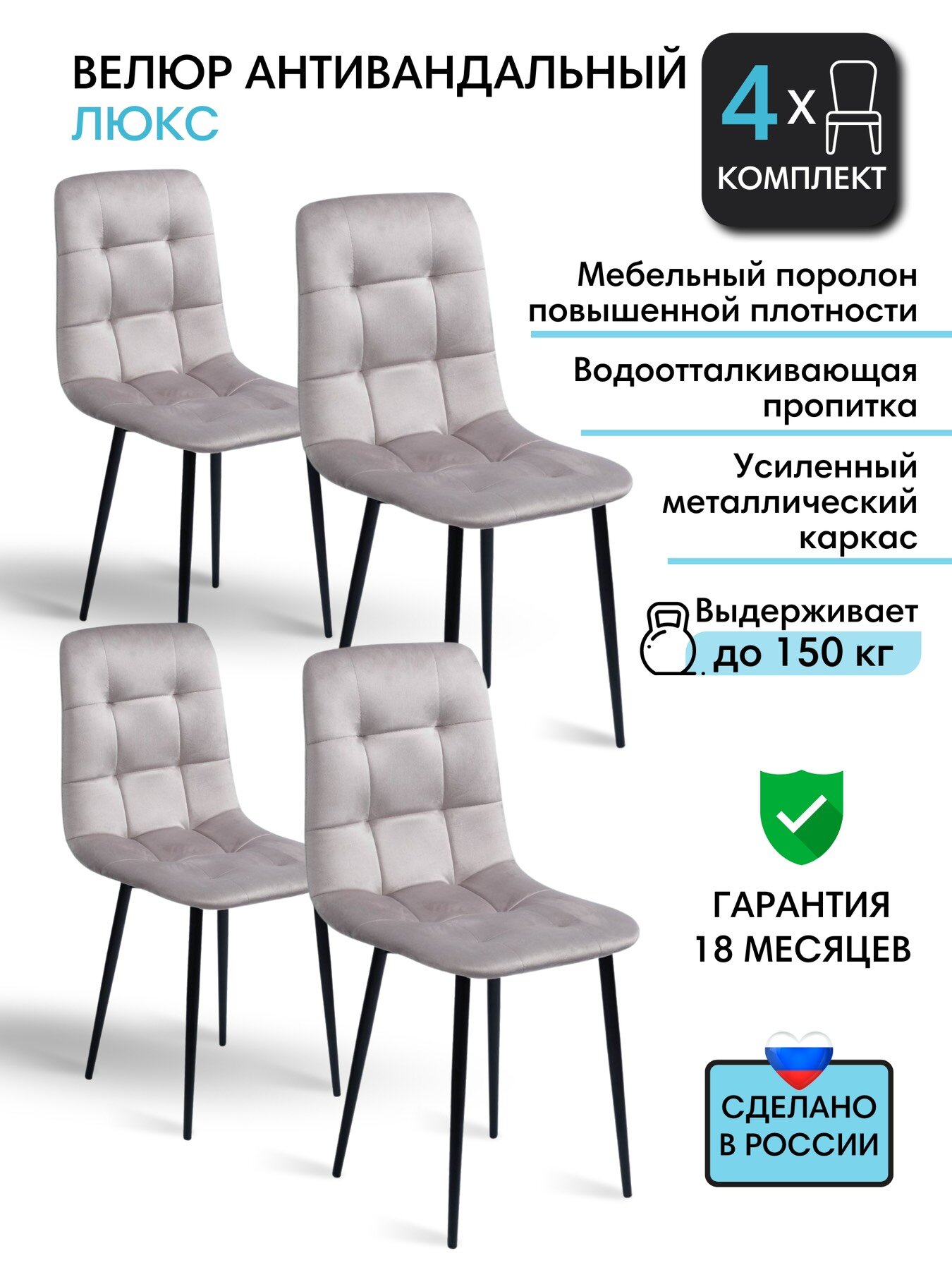 Отзывы на Стул кухонный Фред светло-серый с черными ножками, мягкий со спинкой 4 шт