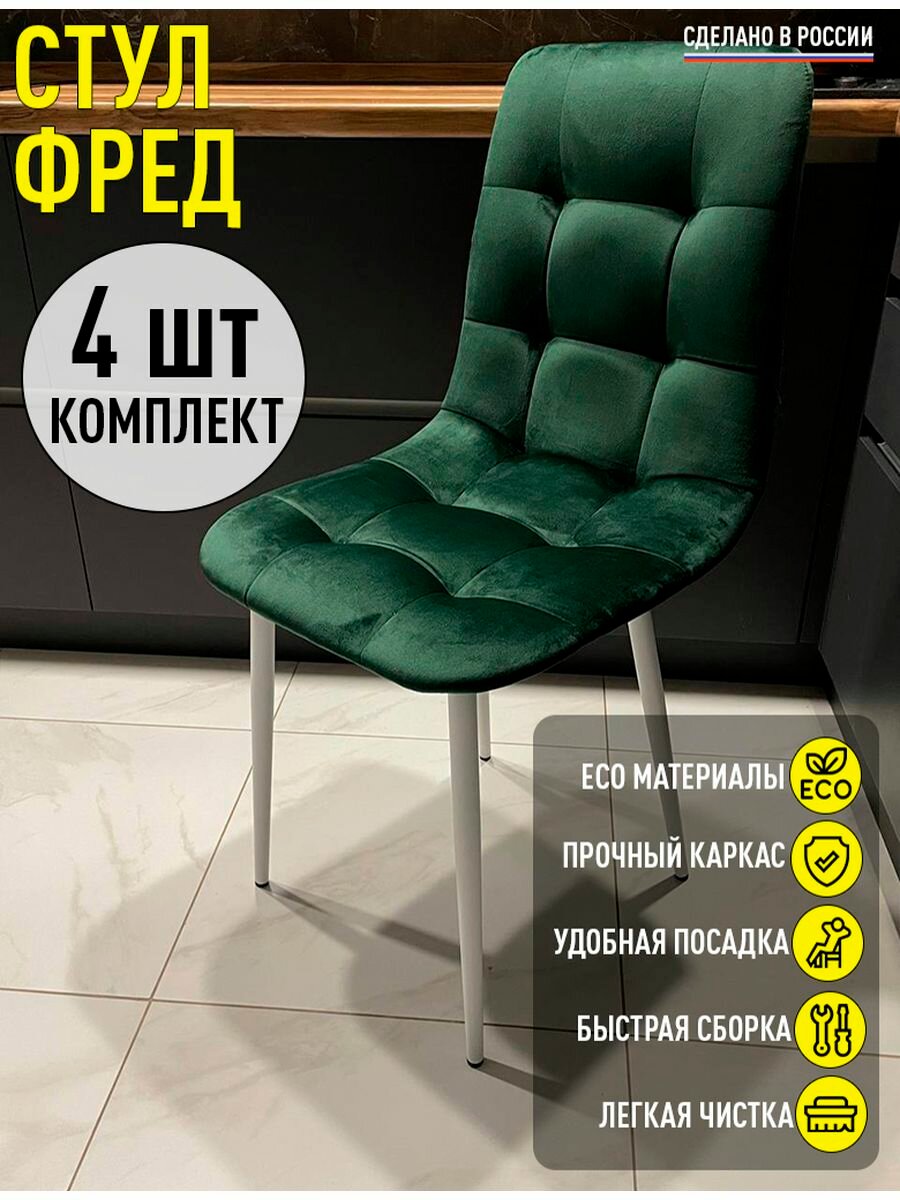 Отзывы на Стул кухонный Фред зеленый с белыми ножками, мягкий со спинкой 4 шт