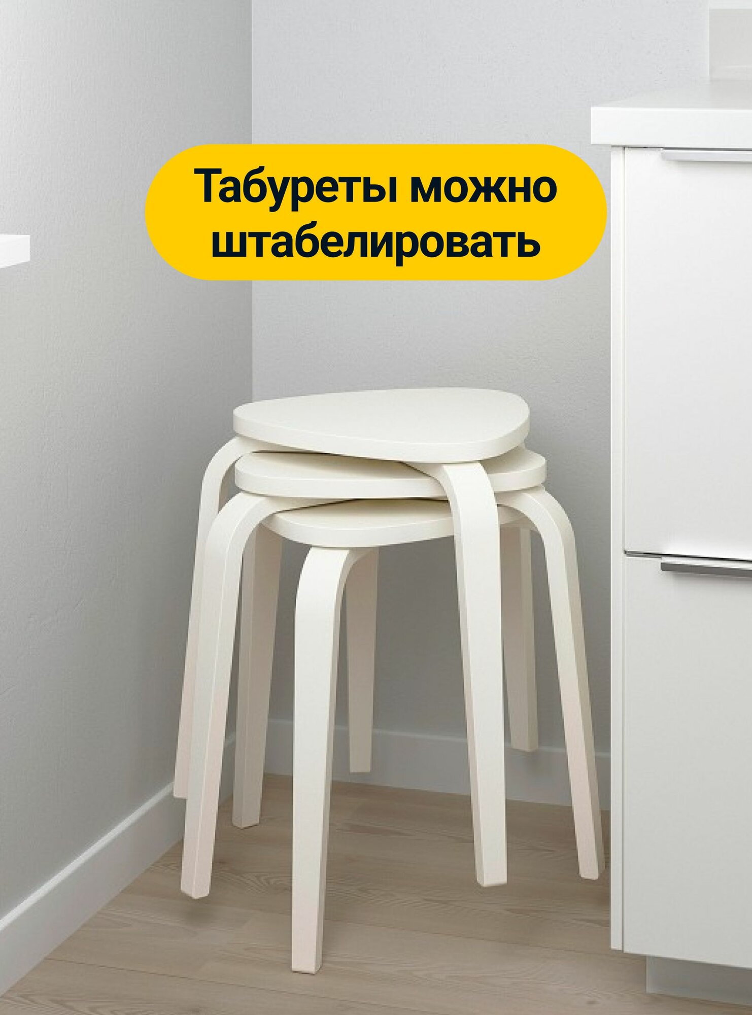 Табурет для кухни белый икеа кюрре, треугольный, деревянный, 1 шт. 1 980 ₽