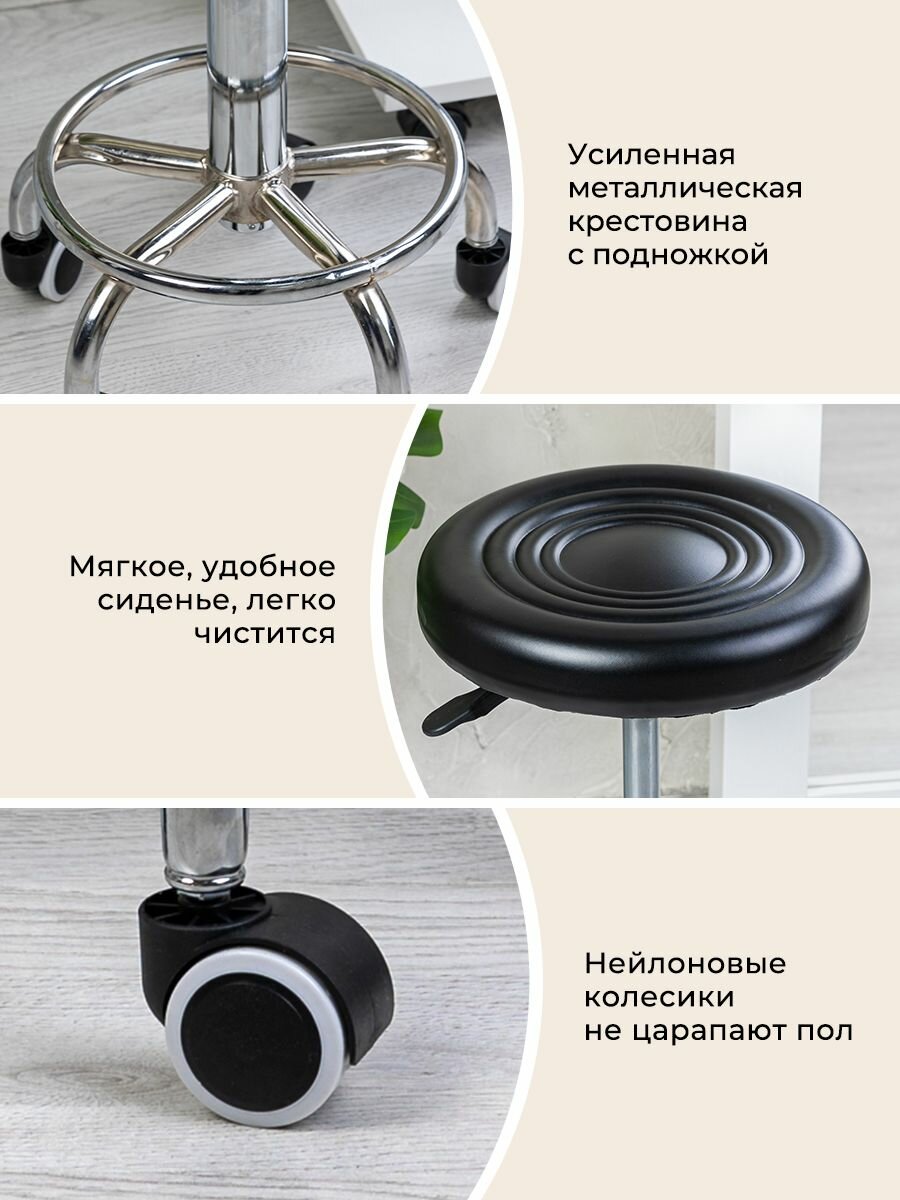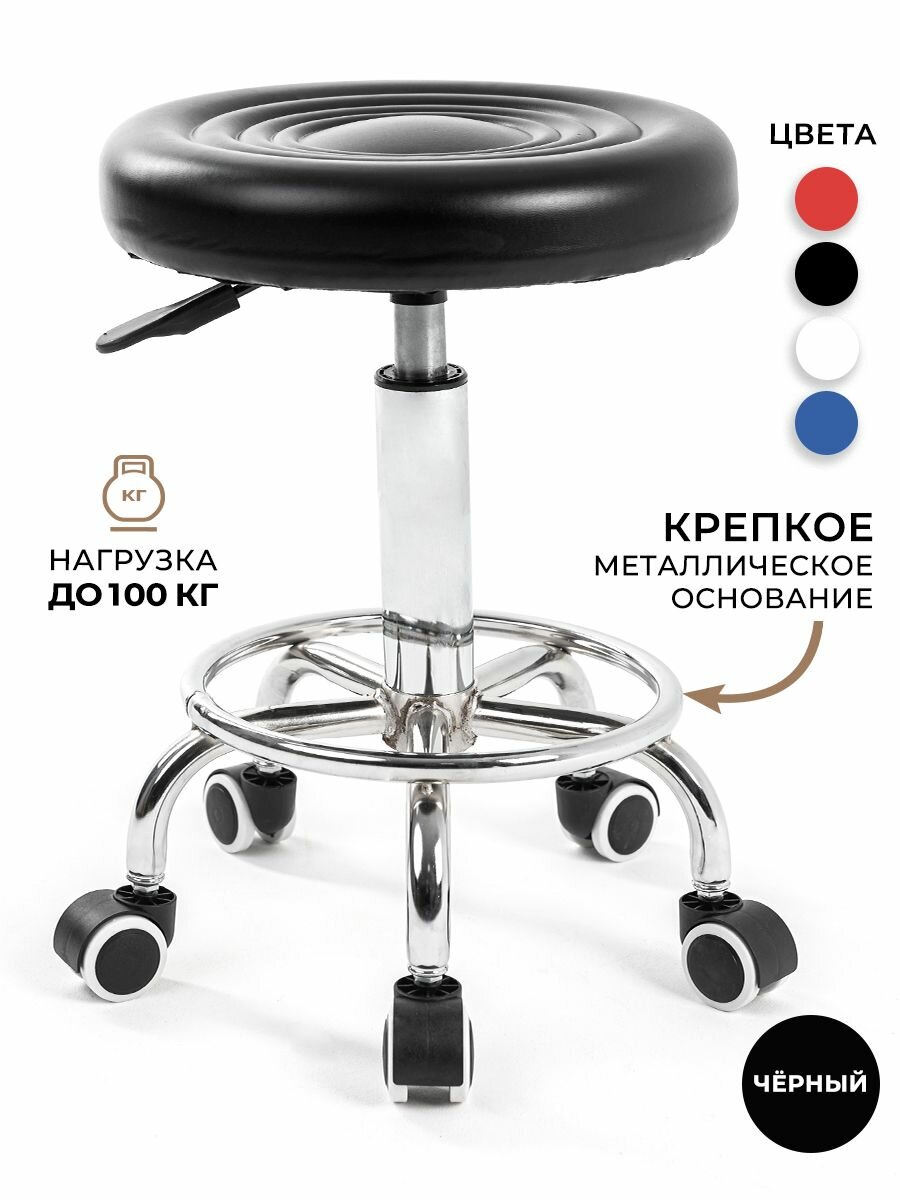 10 цен на Стул мастера GEMLUX GL-BR-002BK табурет мягкий, на колесиках, без спинки, цвет черный