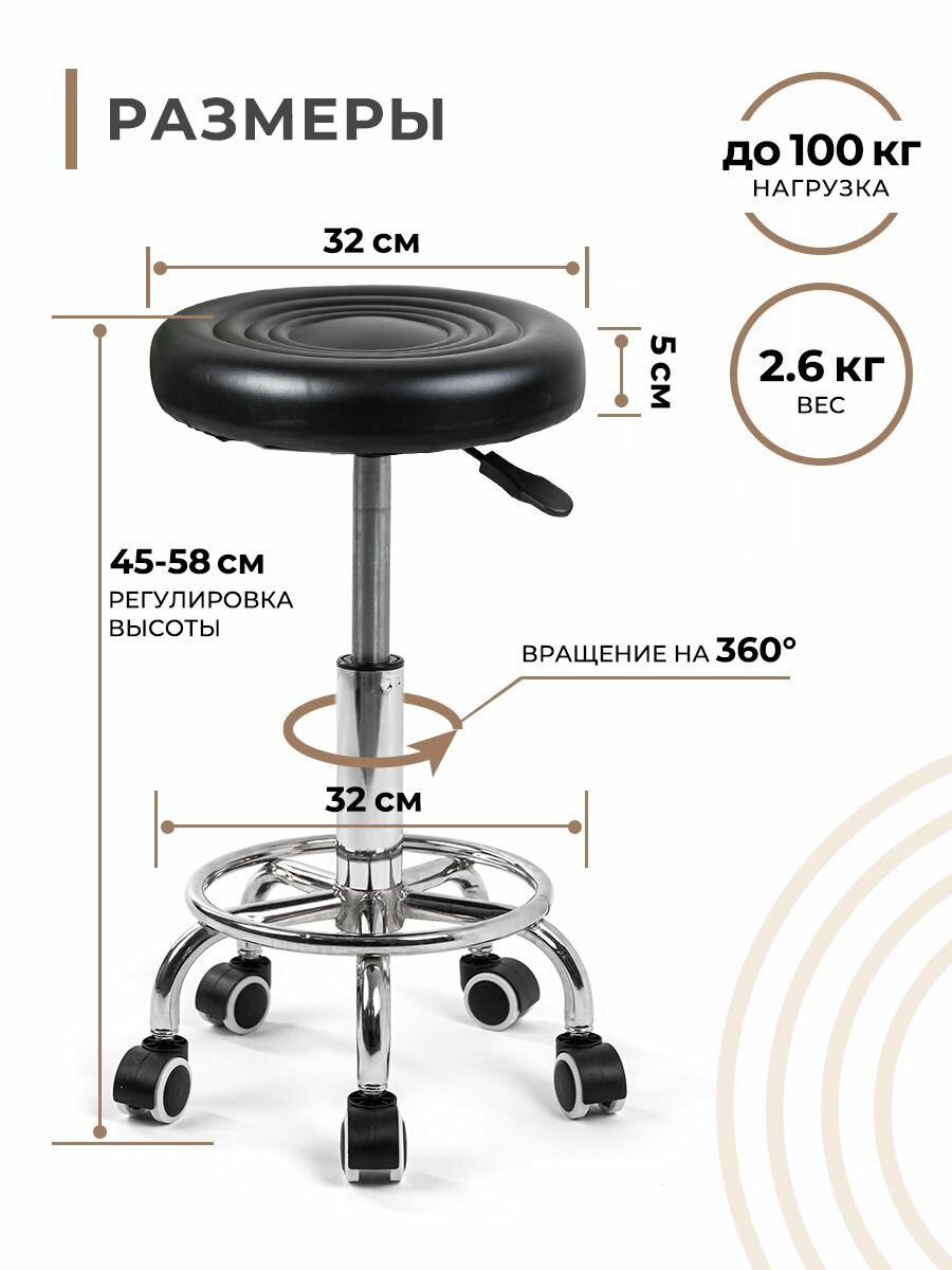 Стул мастера GEMLUX GL-BR-002BK табурет мягкий, на колесиках, без спинки, цвет черный информация: