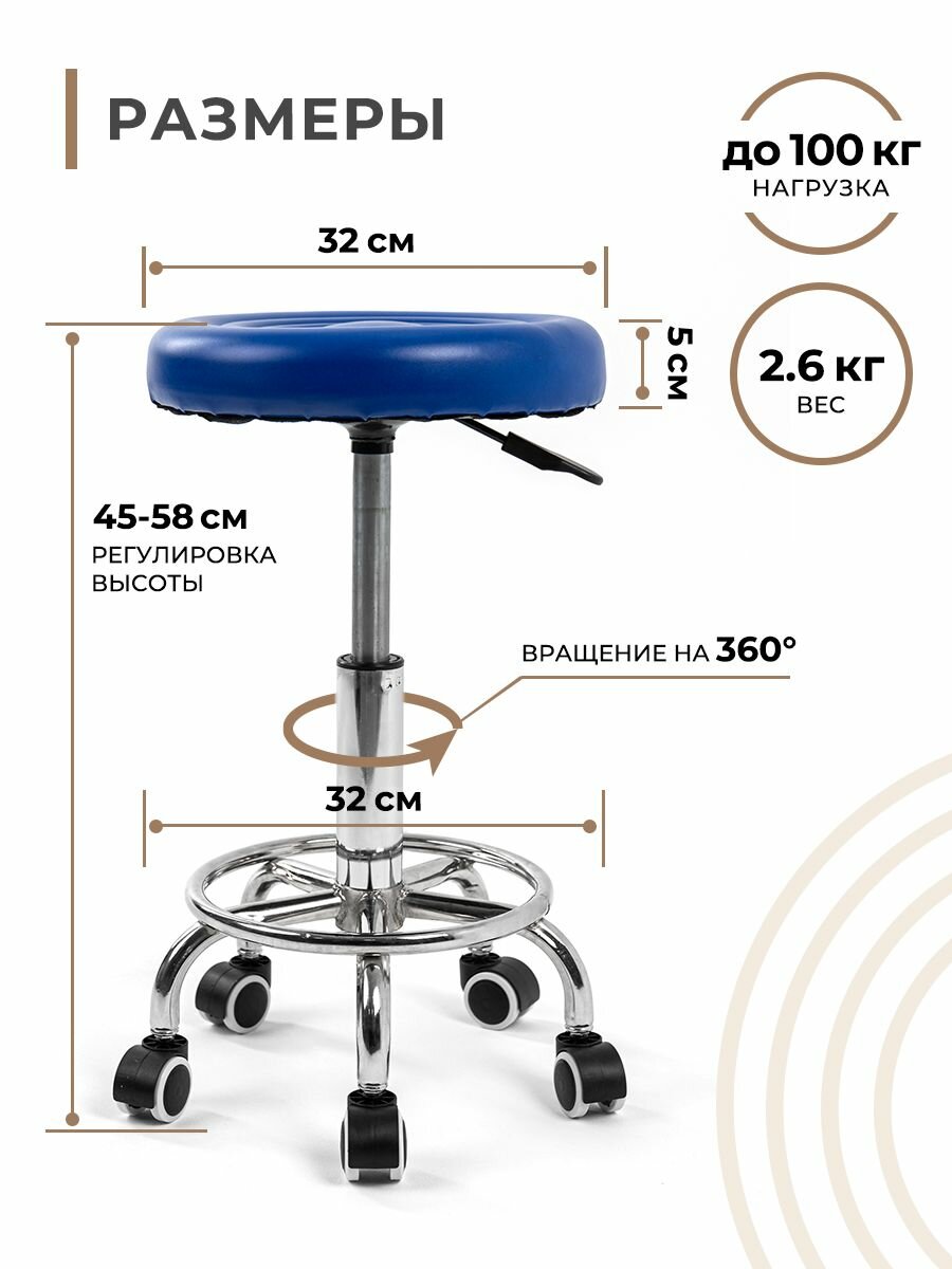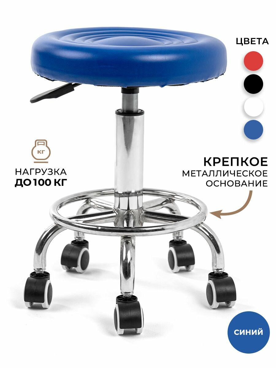Стул мастера GEMLUX GL-BR-002BL табурет мягкий, на колесиках, без спинки, цвет синий информация: