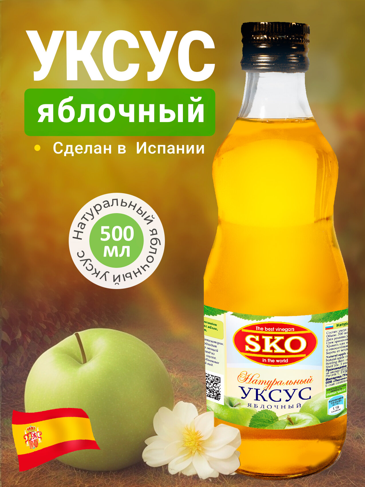 Уксус натуральный яблочный SKO 500мл, ст/б Испания информация: