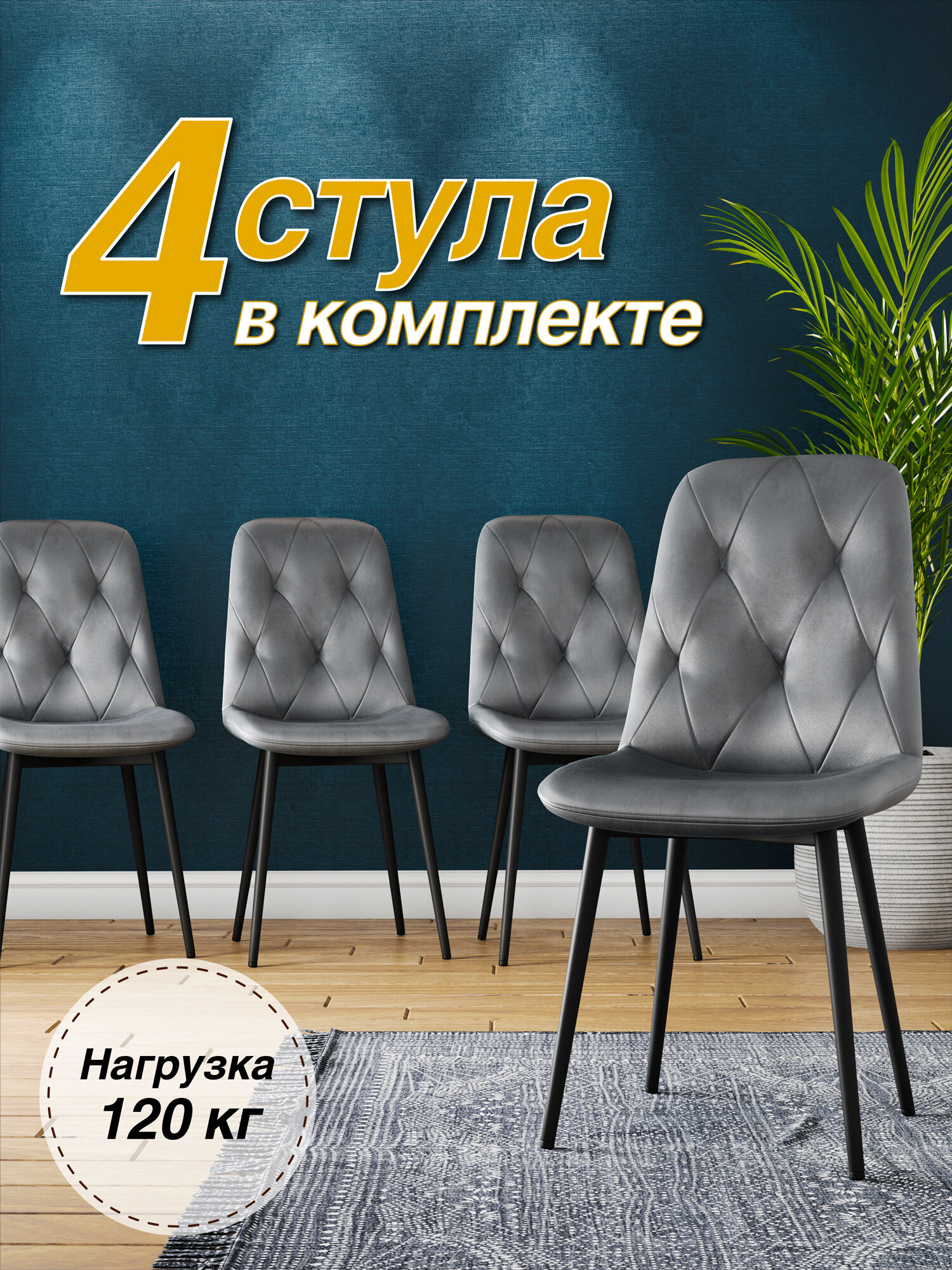 Отзывы на Комплект (4 шт) мягких стульев для кухни, кабинета DC-2103 велюр, серый, на черном каркасе
