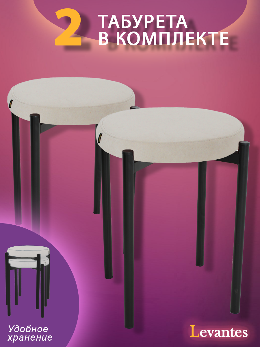 Табуретки Levantes 2шт, белый, черные ножки информация: