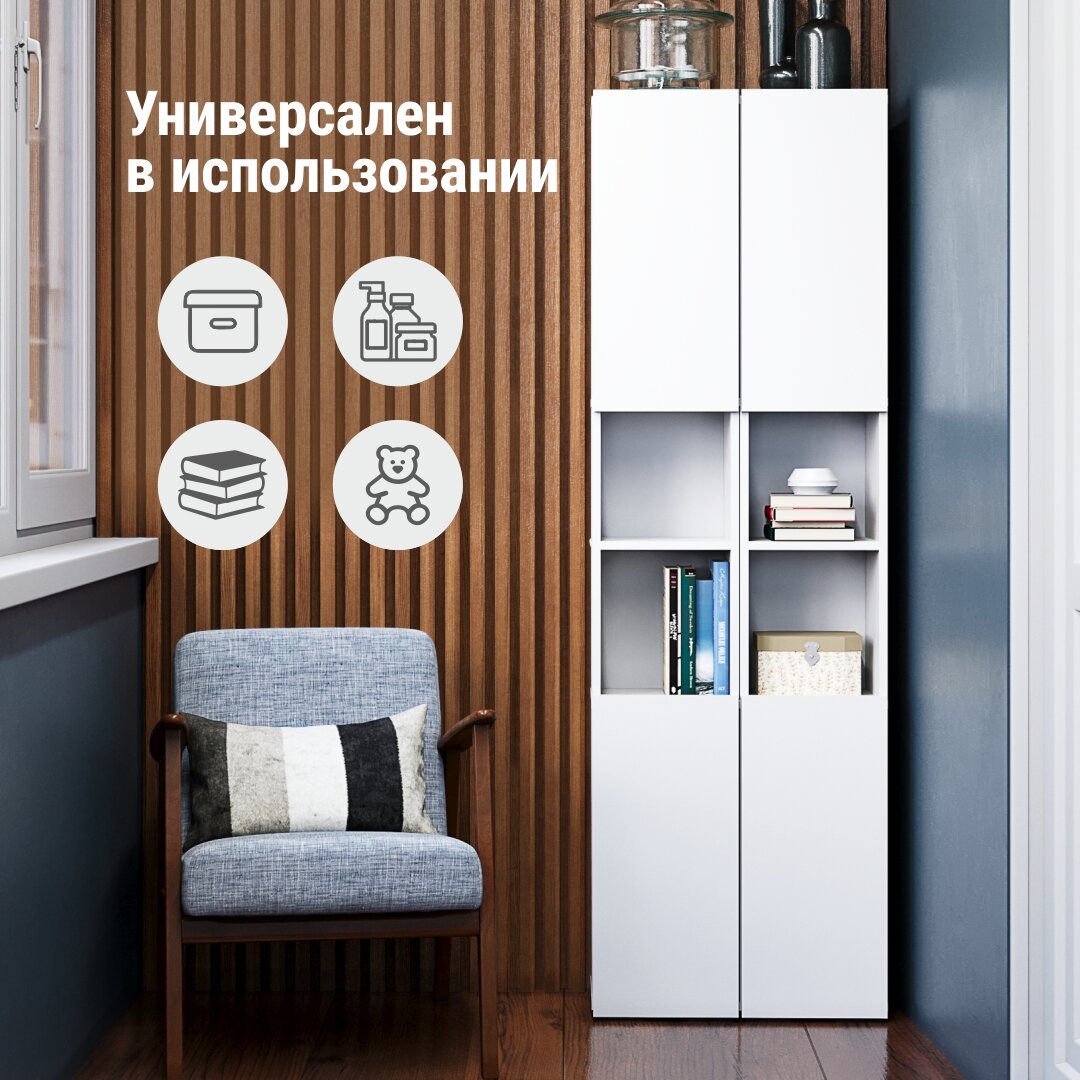 10 цен на Шкаф пенал высокий напольный с дверками белый