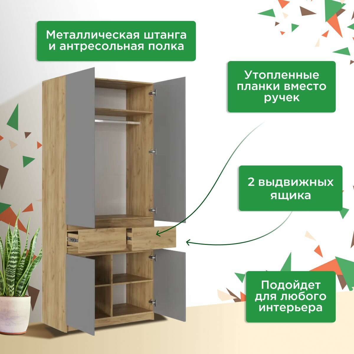 Шкаф распашной Роджина 4-створчатый с ящиками, ЛДСП "Графит, Дуб Крафт белый" 32 046 ₽