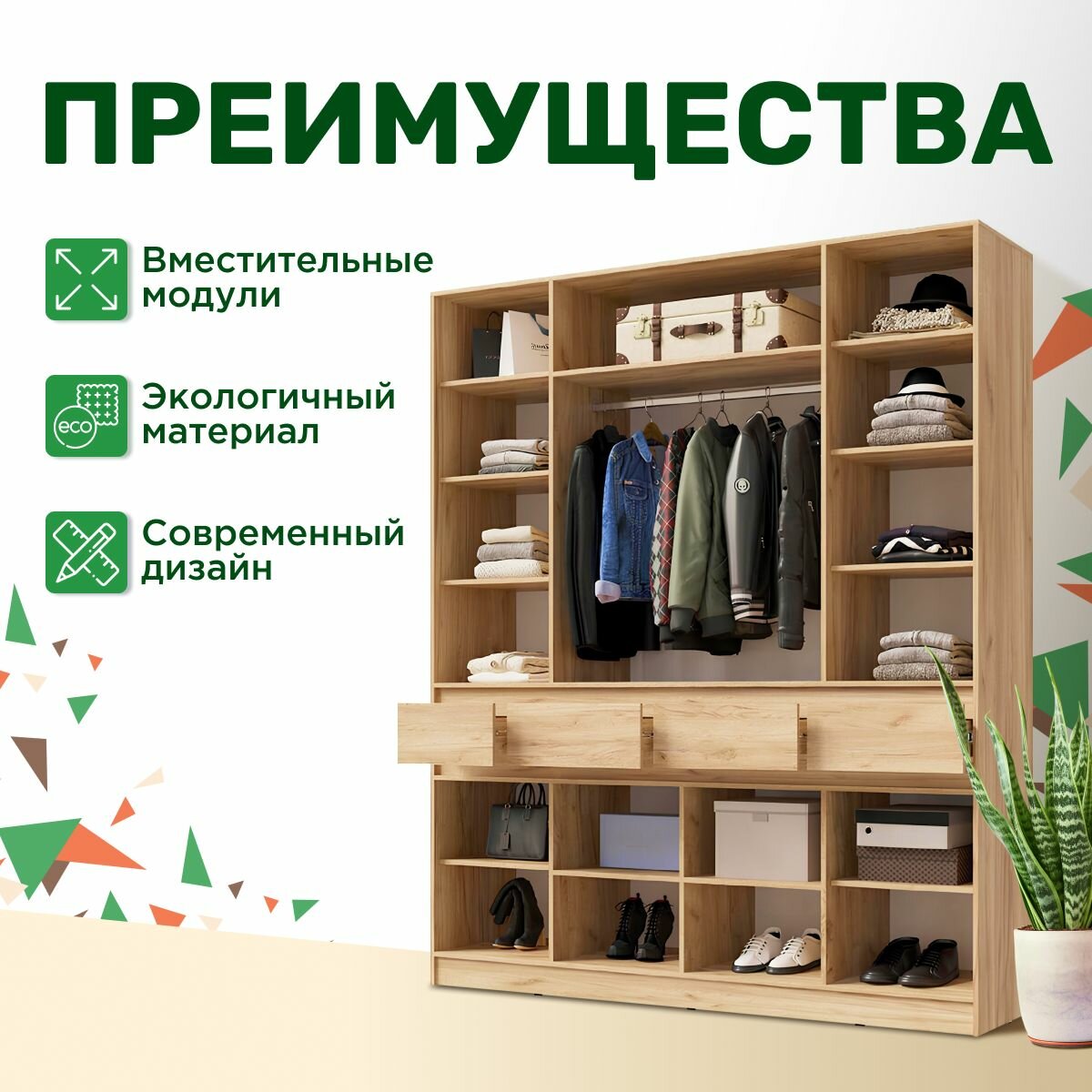 | Особенности | модульный, штанга для вешалок |