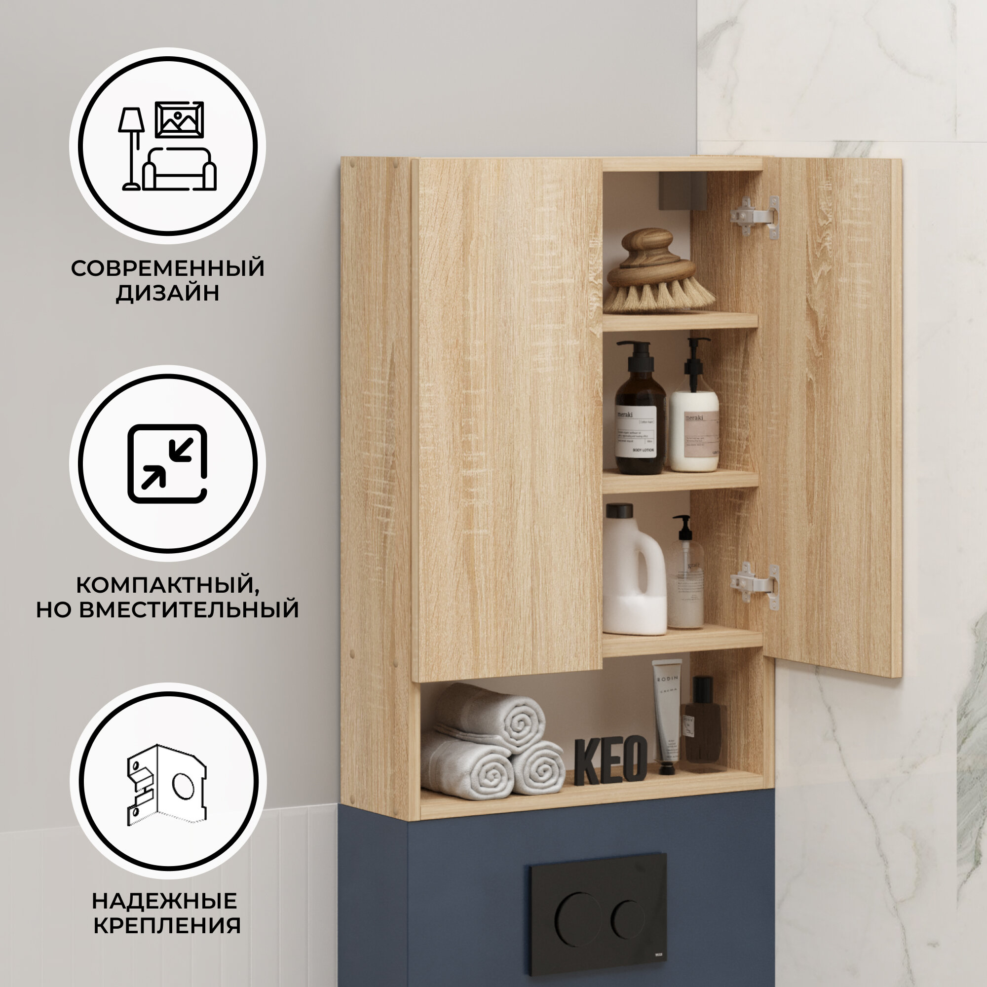 Отзывы на Шкаф навесной с полками для ванной прихожей балкона подвесной Кео ШКН-130 бежевый Дуб Сонома 740х169х500 мм