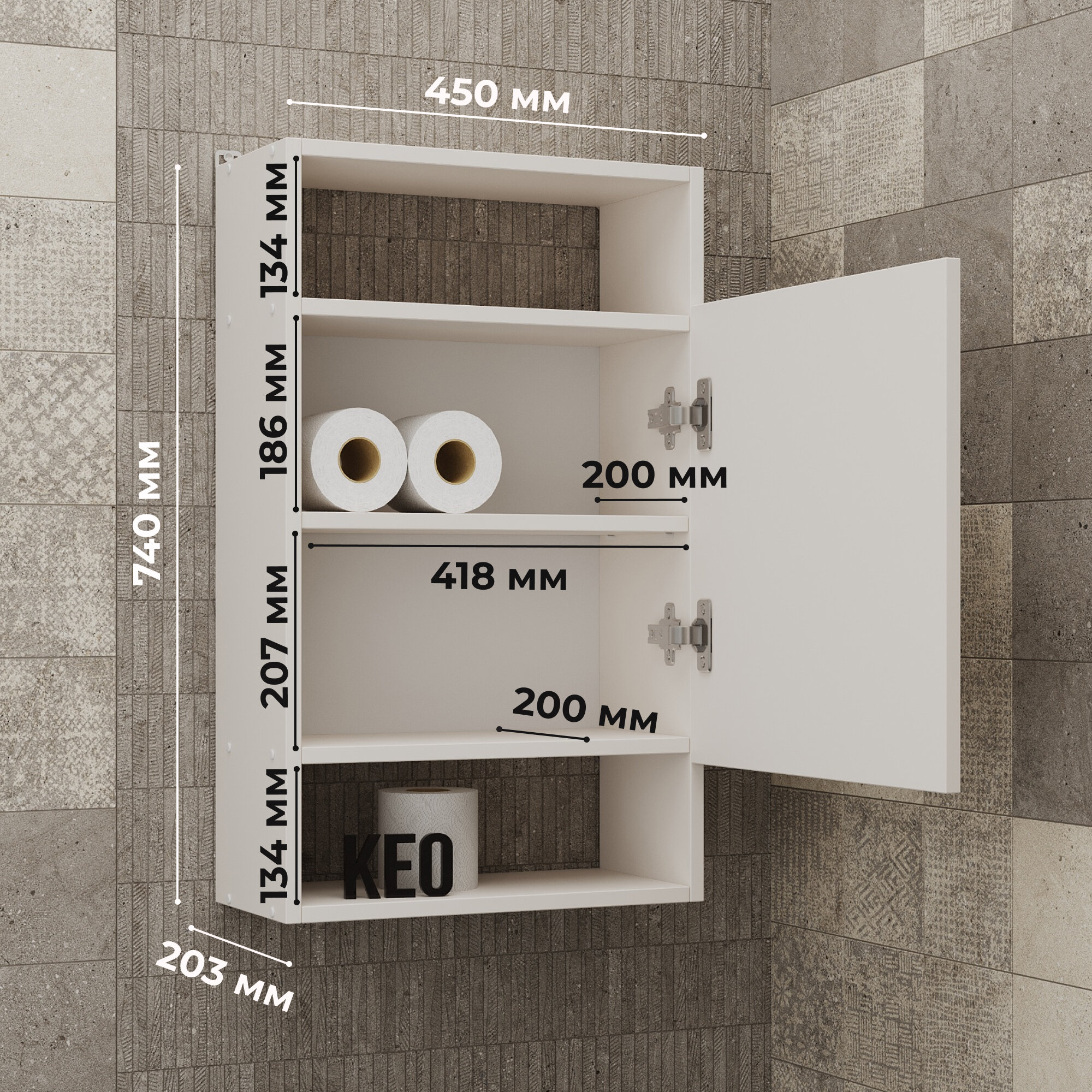 Шкаф пенал навесной для ванной, кухни, гостиной, прихожей Кео ШКН-200 молочный белый 745х219х450 мм информация: