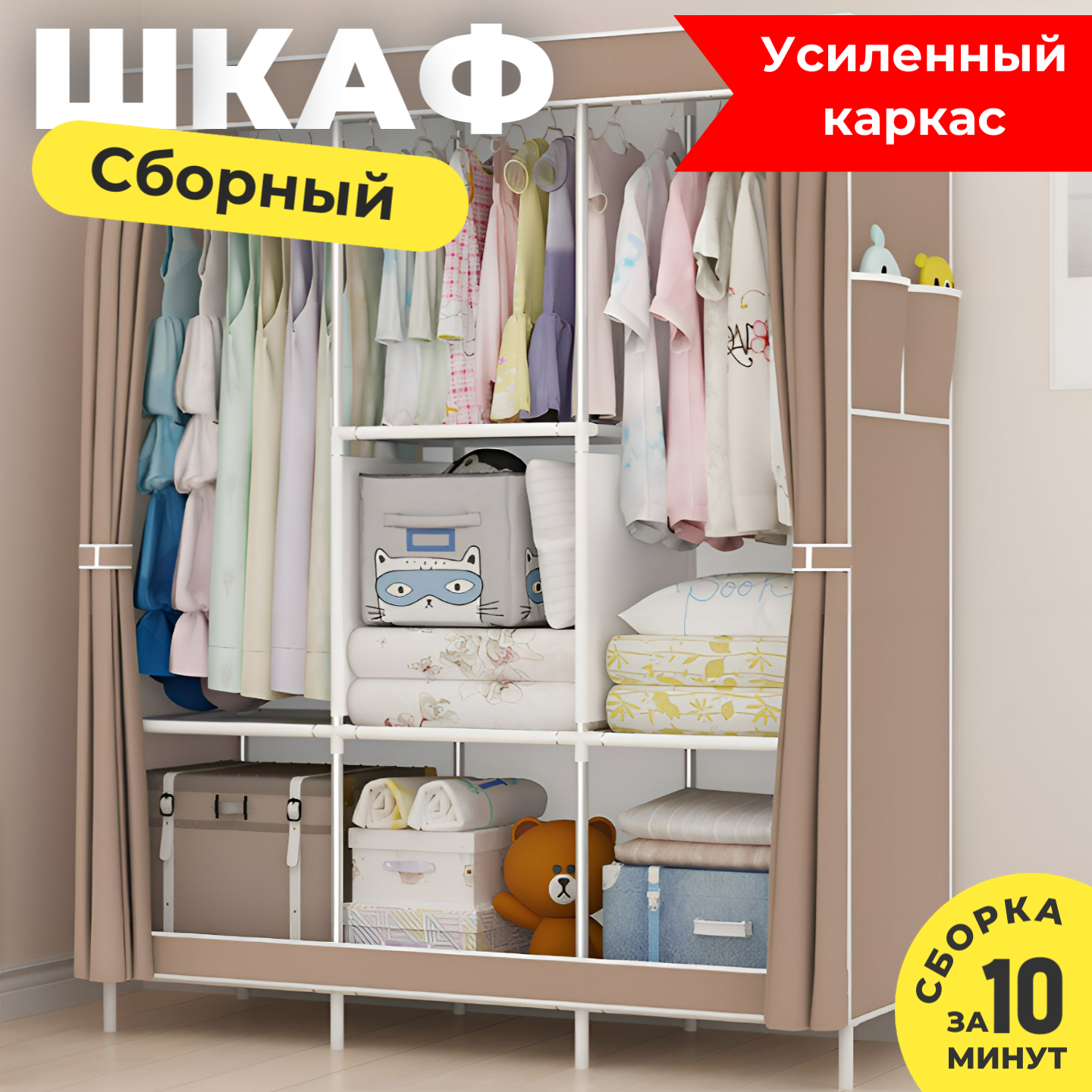 10 цен на Шкаф из ткани на молнии для одежды с полками и штангой, шкаф сборный временный