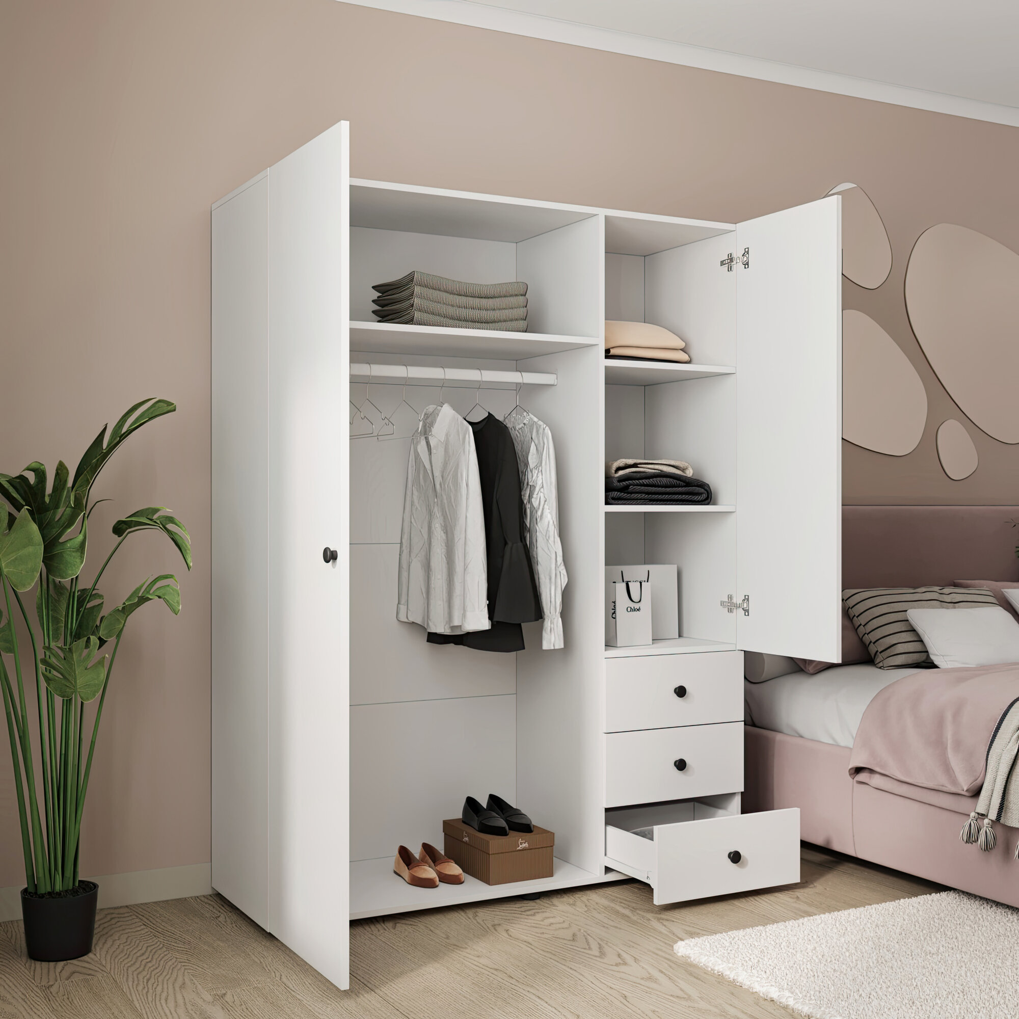 Шкаф для одежды распашной Нонтон Луас, 120 см, 7 полок и штанга, белый глянец