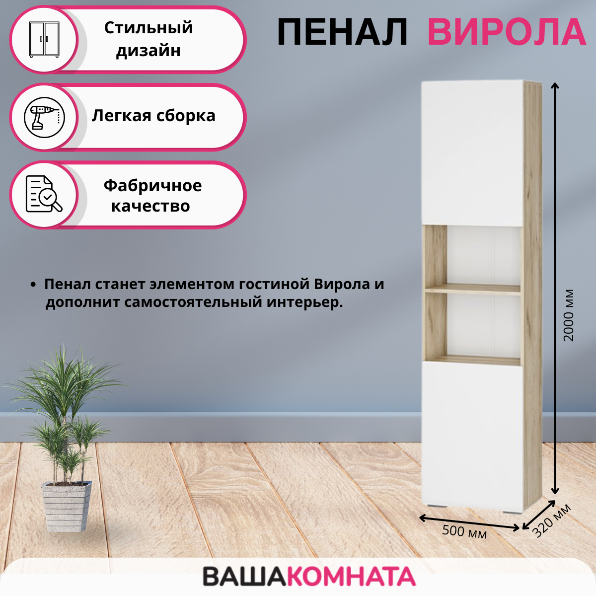 | Комплектация | Пенал Вирола П-500 глянец белый / дуб крафт серый Интерьер-Центр - 1 шт. |