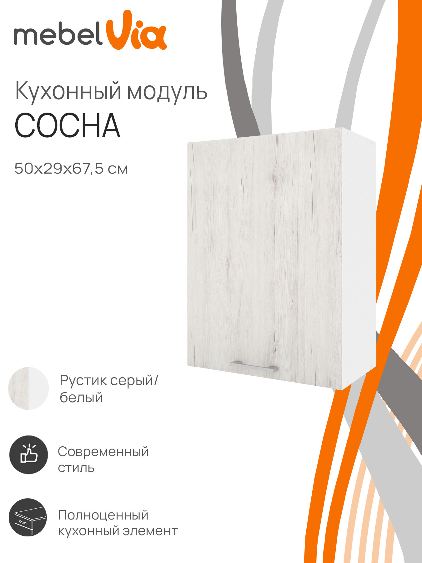 Шкаф навесной "Сосна" 50х29х67,5 см, ЛДСП/МДФ, серый, Россия 4 580 ₽