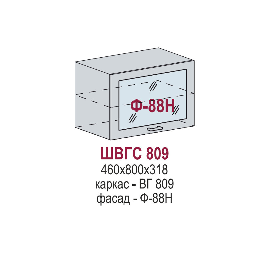 Кухонный шкаф навесной, Кухня Валерия, ШВГ809 со стеклом, Вотан / Дождь Серебряный металлик 6 970 ₽