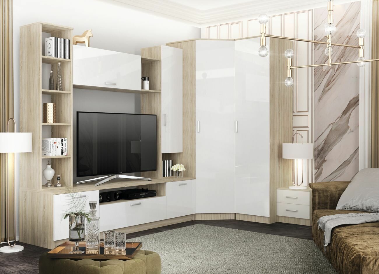 МС Софи Шкаф угловой Сонома/Белый СШУ 860.1