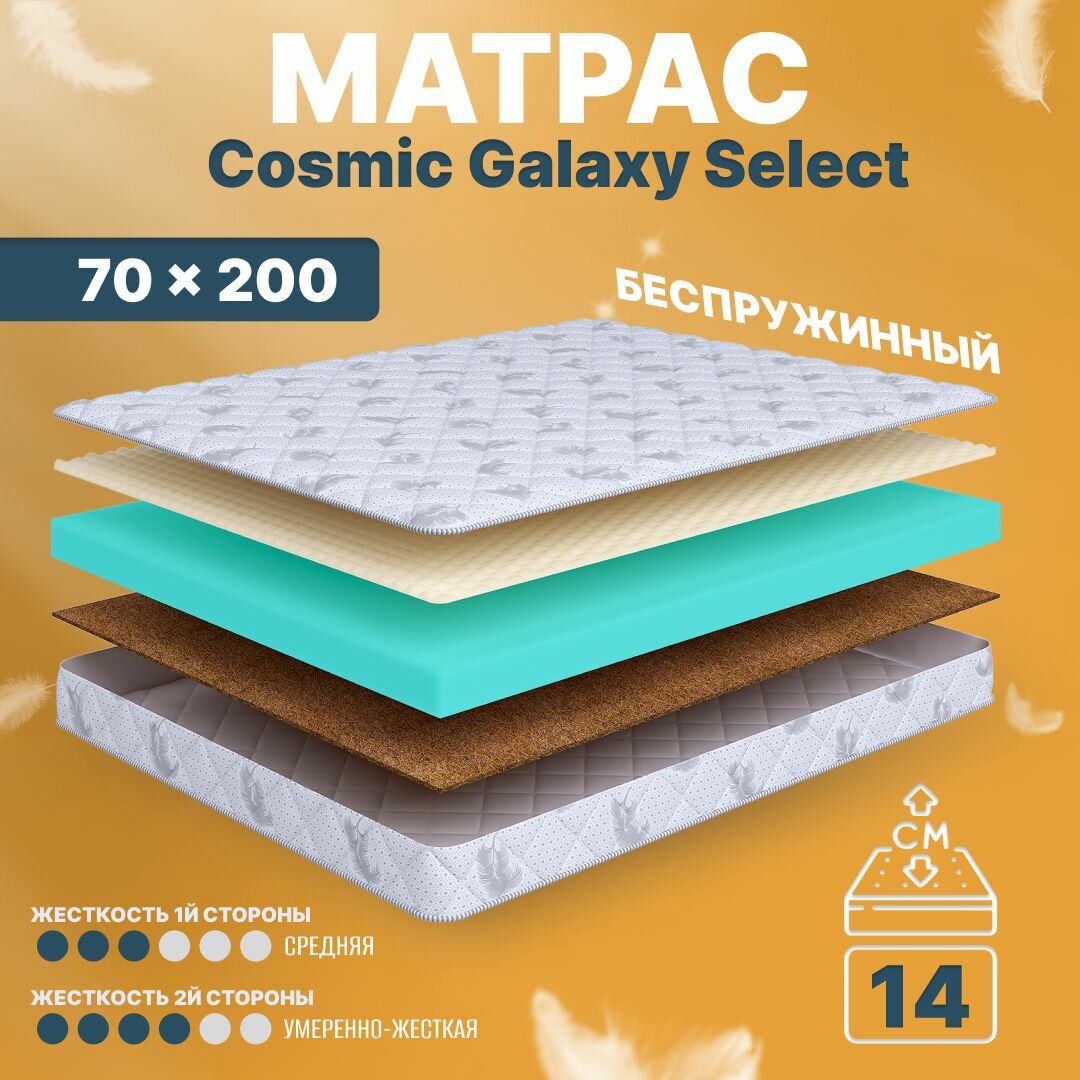 10 цен на Матрас 70х200 беспружинный, детский анатомический, в кроватку, Cosmic Galaxy Select, умеренно жесткий, 14 см, двусторонний с разной жесткостью