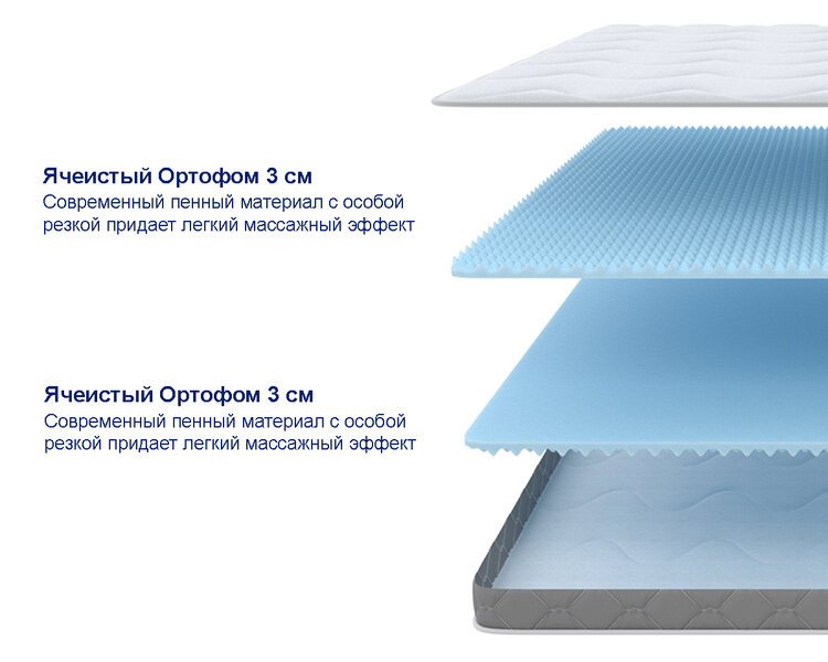 | Комбинированный наполнитель | Ортофом ячеистый 2см + Ортофом повышенной жесткости 2см + Ортофом ячеистый 2см |