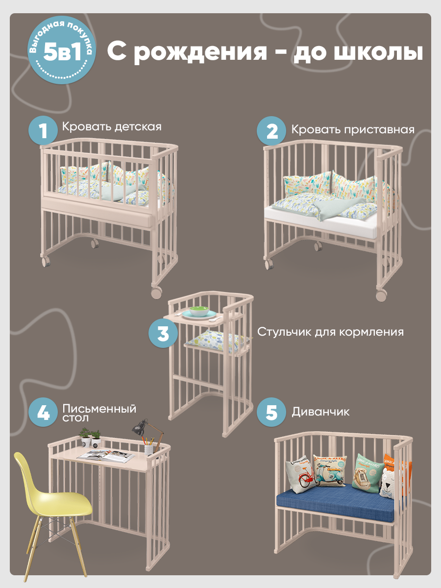 Кроватка трансформер для новорожденных 6 в 1, цвет серо белый