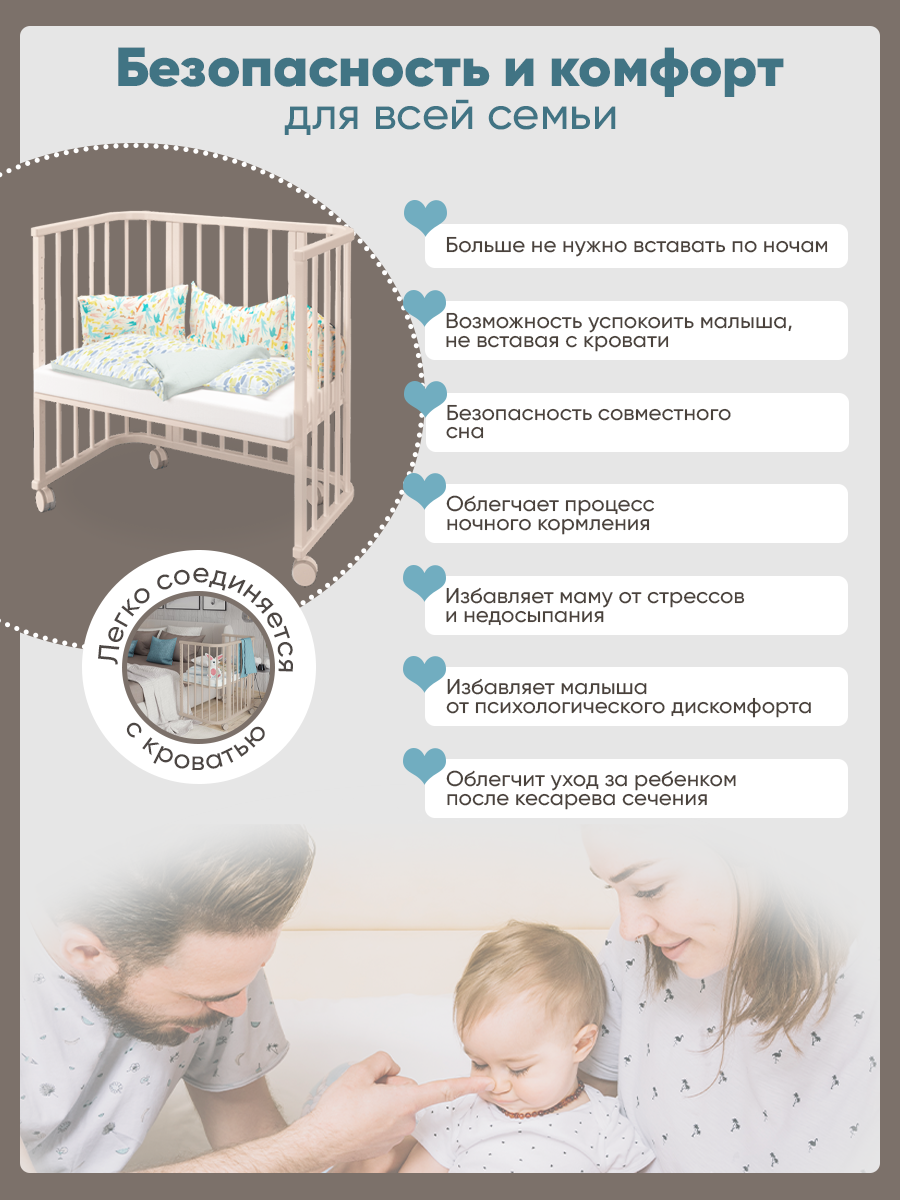 | Особенности | колеса / лакокрасочное покрытие на водной основе / приставная / стопор колес / съемная боковина |