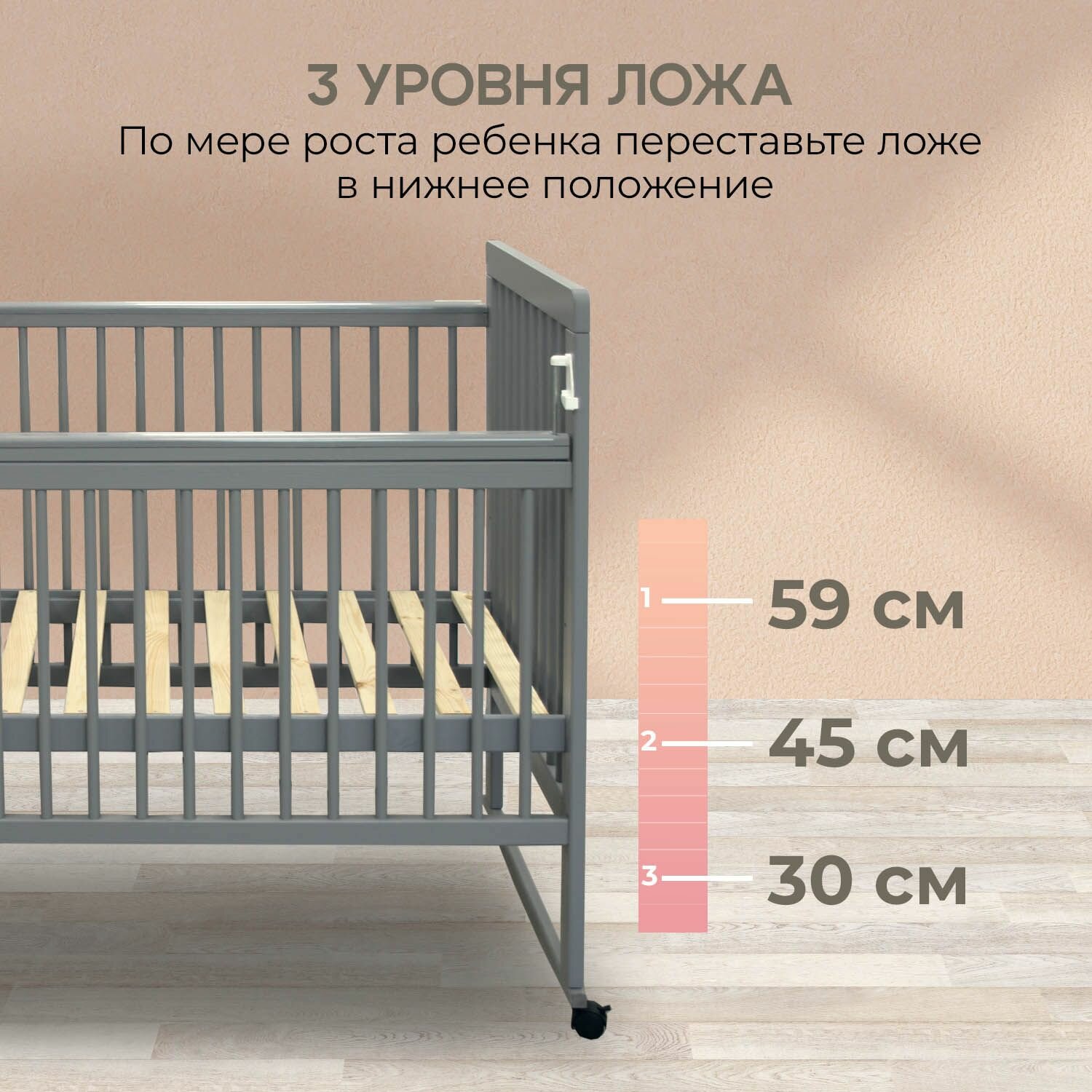 Кровать Fiorellino 120х60 см колёса, качалка серый 03 информация: