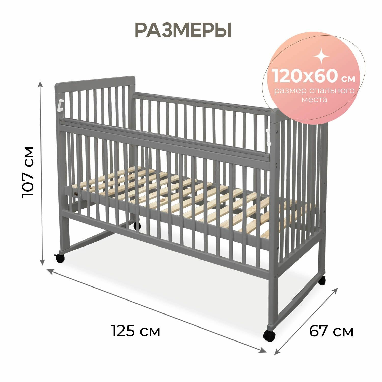 | Комплектация | Кровать без матраса Комплект колес комплект Качалка Накладки на бортики |