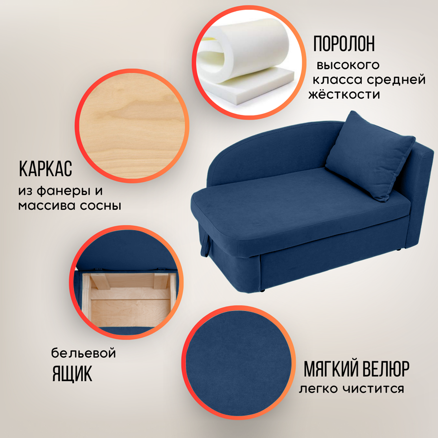 Отзывы на Детский диван-кровать раскладной, 337 диван правая ориентация, износостойкий велюр, цвет синий