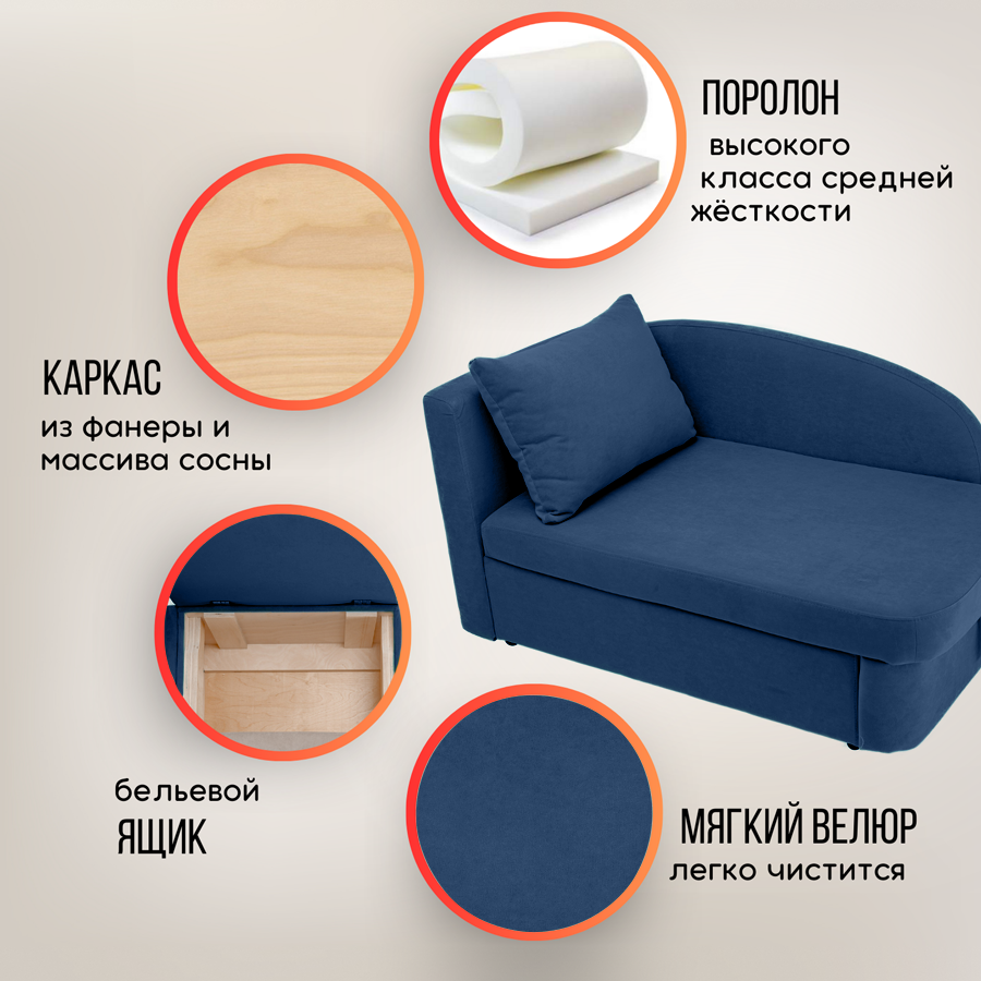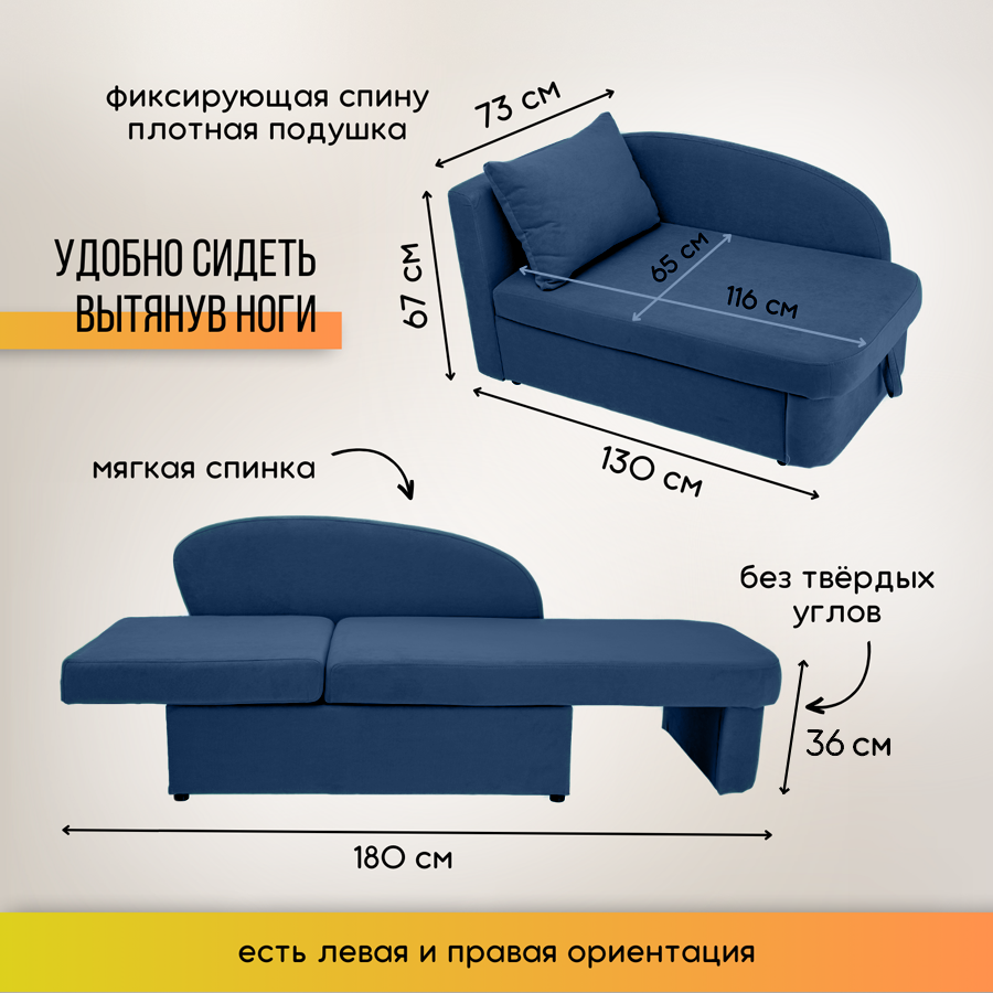 Отзывы на Детский диван-кровать раскладной, 337 диван левая ориентация, износостойкий велюр, цвет синий