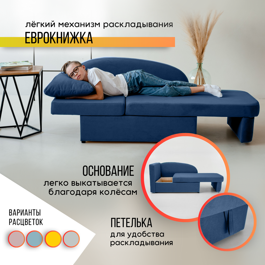 10 цен на Детский диван-кровать раскладной, 337 диван левая ориентация, износостойкий велюр, цвет синий