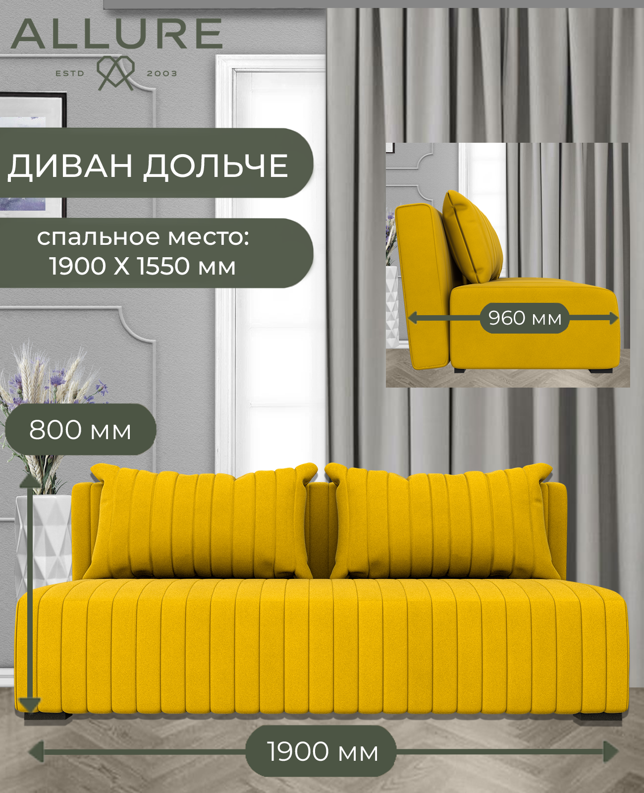Диван раскладной прямой "Дольче" для сна и отдыха, 192х80х96, еврокнижка, велюр желтый, подходит для спальни, детской, гостиной, прихожей, дачи и сада информация: