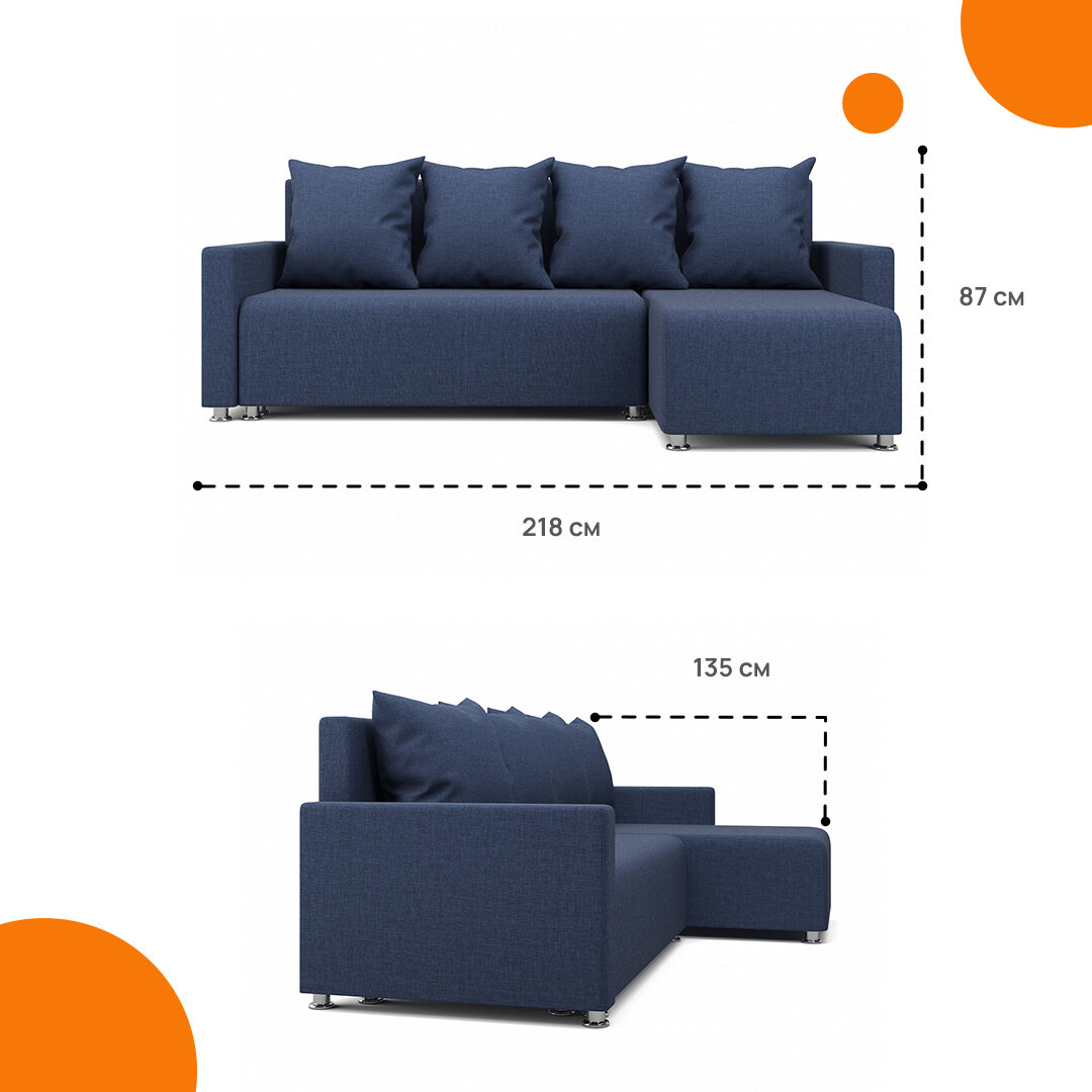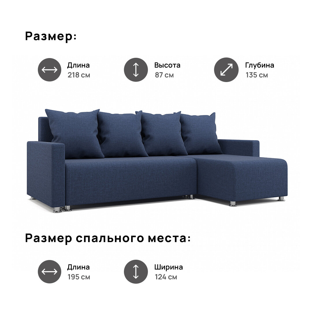 Угловой диван Каир MebelVia темно-синий, рогожка, еврокнижка, универсальный угол информация: