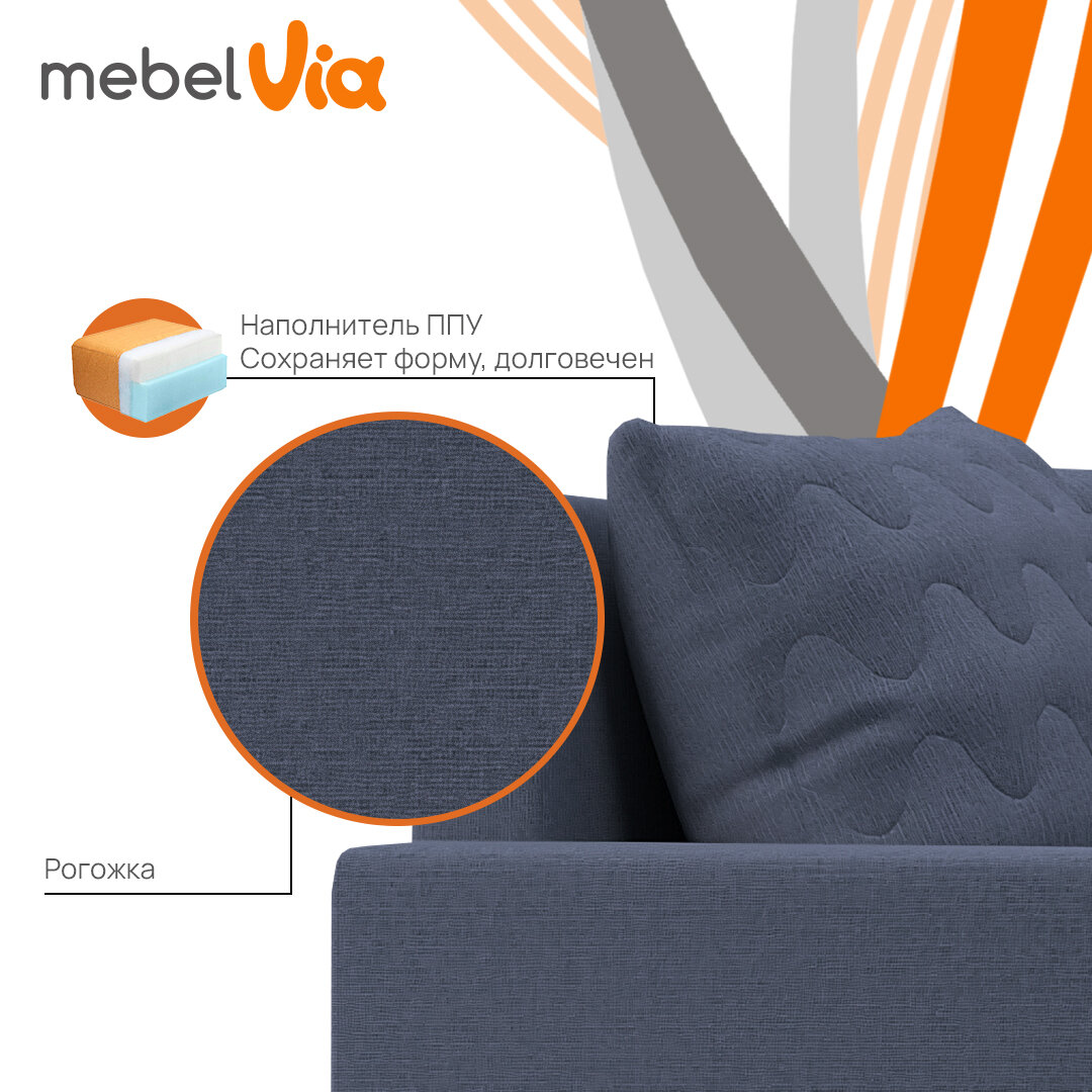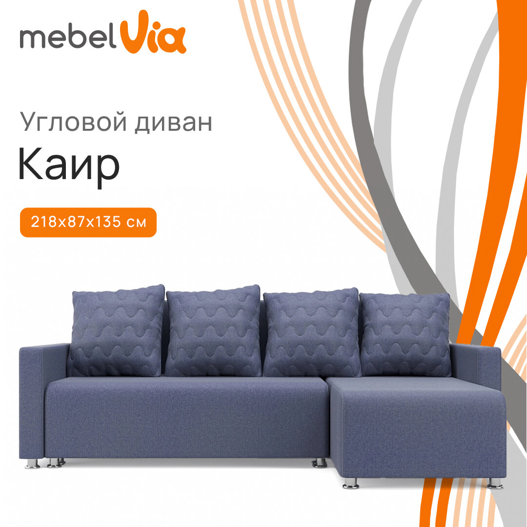Угловой диван Каир MebelVia Синий, Рогожка, Массив, еврокнижка, универсальный угол информация: