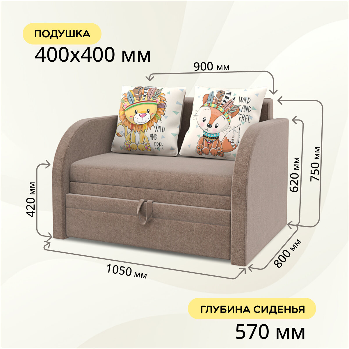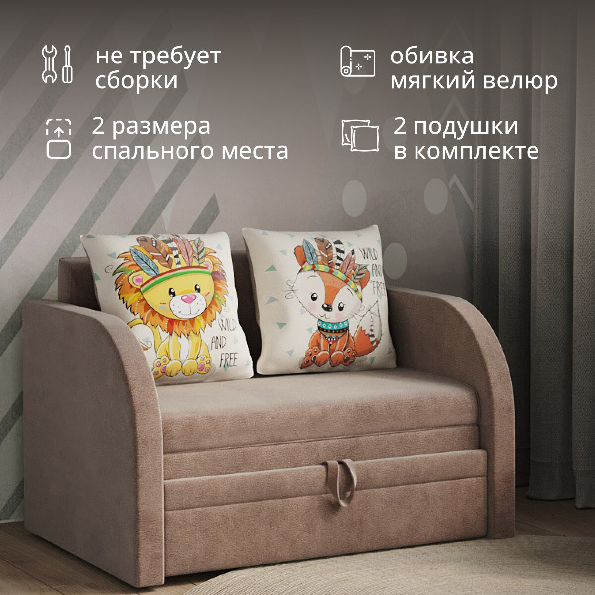 Детский диван-кровать Dинастия-К "Малыш", выкатной механизм, обивка из велюра 27 000 ₽