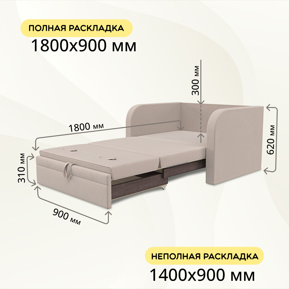 Особенности | раскладная конструкция, с подлокотниками, съемные подушки, съемный чехол, ящик для белья |