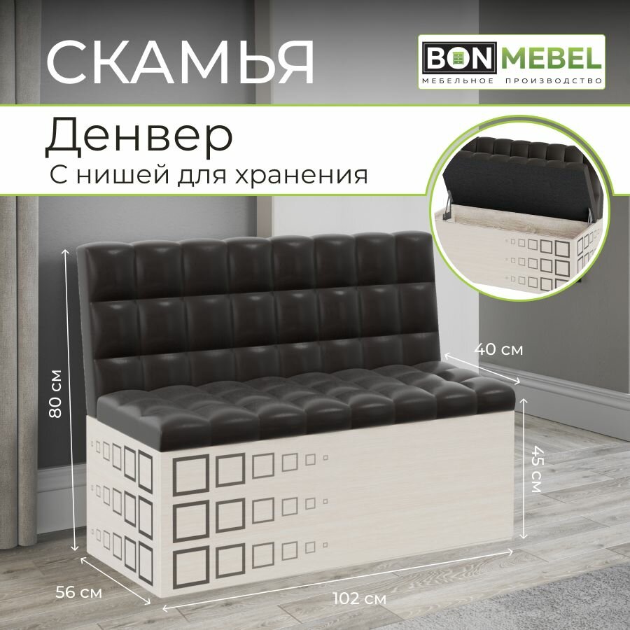 Диван Денвер, Дуб Крафт Белый / КЗ Шоколад, для кухни, для прихожей, для гостиной 17 370 ₽