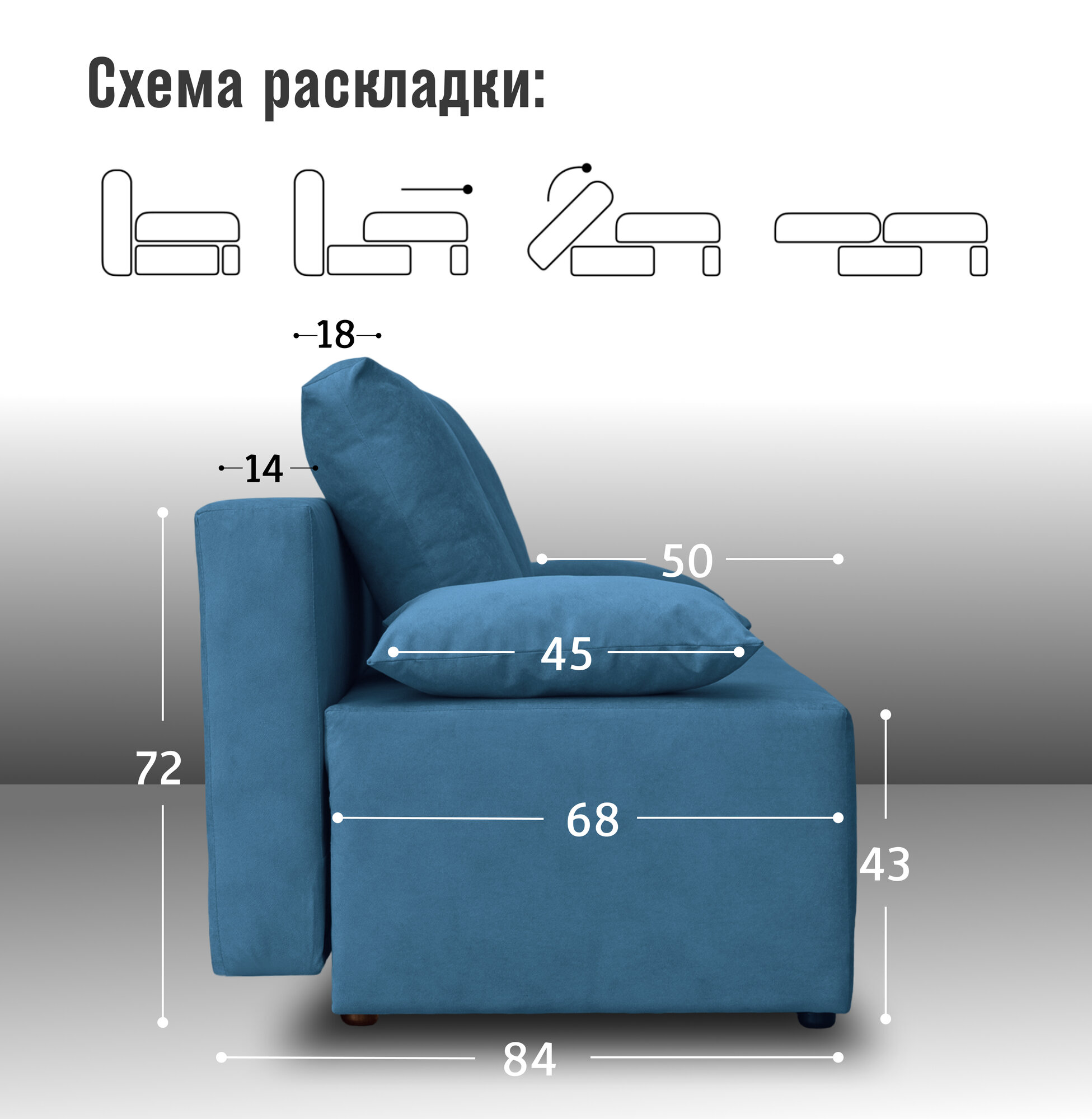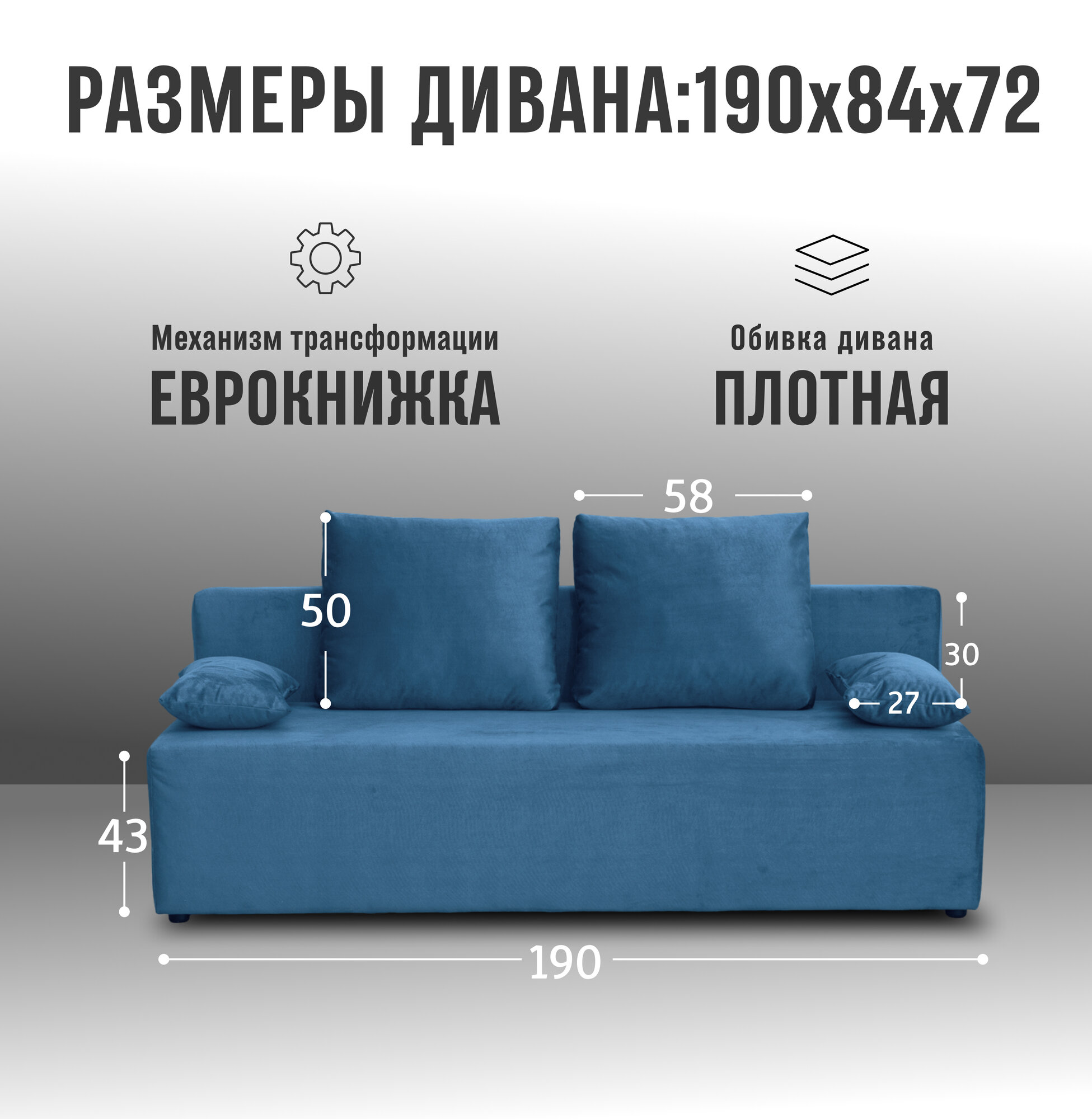 Раскладной диван кровать Берн, механизм еврокнижка, 190х84х72 см, синий, прямой диванчик с ящиком для хранения информация: