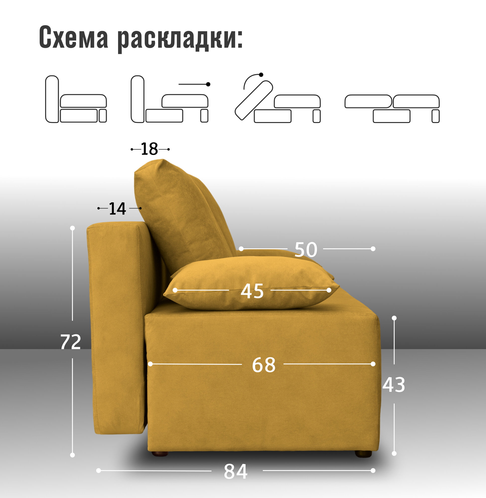 Раскладной диван кровать Берн, механизм еврокнижка, 190х84х72 см, горчичный, прямой диванчик с ящиком для хранения информация: